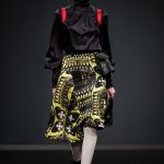Sono le sovrapposizioni di stampe in colori acidi a movimentare la collezione Arnoldo][Battois per il prossimo autunno inverno 2017-18. Giallo, azzurro, arancione, verde menta e rosa shocking inseriscono tocchi di colore nelle tute, nei turtleneck a fantasie vintage, nelle bluse dalle maniche ampie e negli abitini aderenti. A completare le silhouette sono complesse architetture in lurex, volant extralarge e accessori stravaganti. Sulla passerella di Altaroma 2017, così come nelle precedenti collezioni, le menti creative del brand Silvano Arnoldo e Massimiliano Battois danno grande spazio ai dettagli. I sandali di pelliccia si indossano con calze a contrasto, le collane sono enormi e dominano l’intero look, i guanti si accendono di colori brillanti. Ma sono soprattutto le borse ad aver reso celebre il brand Arnoldo][Battois: in questa collezione autunno inverno 2017-18 diventano minibag, come piccoli gioielli da polso. La sfilata Arnoldo][Battois ad Altaroma conferma la scelta di affidarsi alla maestria degli artigiani che lavorano sulla Riviera del Brenta, rivelando un forte attaccamento alla propria terra e alle radici del Made in Italy. Il Lanificio Paoletti ha infatti realizzato le stampe in esclusiva per la collezione che mescola contemporaneità e glamour vintage, toni acidi e colori pastello in una moda donna originale e affascinante.