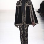 Il focus è sulle spalle: sottolineate da elaborati ricami, inserti di pelliccia e applicazioni di cristalli, sono le vere protagoniste di questa collezione autunno inverno 2017-18 firmata Bottega Veneta. Nonostante Maier preferisca non parlare di moda anni ’40, il riferimento estetico a quel decennio è abbastanza evidente. Tubini strizzati in vita, elegantissime pencil skirt e ampie mantelle creano uno stile raffinato, il cui culmine arriva in chiusura di sfilata, con lunghi abiti da sera a colonna da diva anni ’40. La moda uomo presenta invece linee asciutte, tagli precisi e dettagli da dandy come i papillon e i piccoli foulard al collo. Le proposte di borse Bottega Veneta 2017 sono ampie handbag per lui e preziose pochette per lei, che confermano la maestria del brand nel campo della pelletteria. Tra gli accessori, spiccano le scarpe allacciate sulla caviglia con dettagli furry. Nel complesso, la sfilata Bottega Veneta autunno inverno 2017-18 risulta una delle più raffinate di questa stagione alla Milano Fashion Week, forse un po’ penalizzata dal mix di moda donna e moda uomo che risultano tra loro poco omogenee. Una cosa su cui Tomas Maier dovrà lavorare per le prossime stagioni.