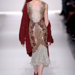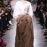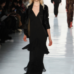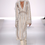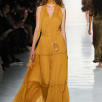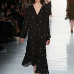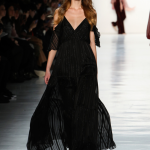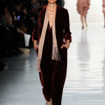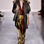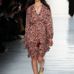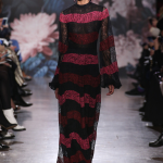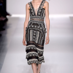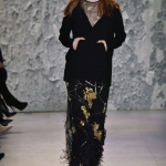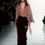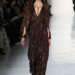 Non mancano note folk declinate in chiave metropolitane, tra echi marocchini che sbucano soprattutto nella palette cromatica, che abbraccia tonalità speziate come la paprika: tripudio di opulenza nelle stampe che strizzano l’occhio all’India, mentre le scarpe traggono ispirazione dal Nord Africa. Un guardaroba affascinante ed ipnotico, quello sdoganato da Erin Fetherston, tra maxi dress e tuniche dal piglio coloniale, e pantaloni a gamba larga di ispirazione boho-chic. La stilista riserva attenzione certosina ai dettagli, anch’essi declinati in chiave etnica, per quanto bilanciata da pezzi di netta ispirazione urban, come abiti in velluto dalle silhouette rilassate e maglioni a collo alto indossati con pantaloni in maglia. L’intera collezione è pervasa da uno charme bohémien che sembra fare riferimento agli anni Settanta: tuttavia la designer non si perde in sterili echi nostalgici ma rielabora le ispirazioni in una collezione elegante e sofisticata, pensata per una donna moderna.