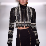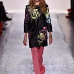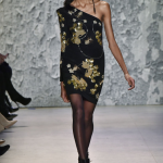 Giovane e divertente la collezione di Nicole Miller, che ha sfilato nell’ambito della fashion week newyorkese. La stilista ha dato vita ad una sfilata interessante, per un autunno/Inverno 2017-2018 che vede una inedita fusione di elementi gipsy e citazioni grunge. La stilista unisce motivi dal sapore mistico a note streetwear, in un continuo gioco di rimandi e sovrapposizioni. Le carte dei tarocchi, costellazioni, dragoni e ancora fiori ed api sono i motivi che impreziosiscono maglie, t-shirt e minidress, facendo capolino attraverso decorazioni in cristalli e paillettes. Largo a cardigan minimali, animalier all over per abiti sartoriali e strutturati con maniche a sbuffo, black all over con applicazioni gioiello su mini dress monospalla: tripudio di stampe jacquard e tessuti preziosi da abbinare a parka camouflage e capispalla dalle note sporty. In passerella sfila una parata di capi di stile diverso, per una ragazza eclettica e dalla personalità spumeggiante: paillettes all over impreziosiscono magliette semplici da abbinare a jeans strappati, mentre simboli mistici fanno capolino da bomber asimmetrici. La collezione è pervasa da uno spirito gitano, che utilizza simboli arcaici ed esoterici sdoganandoli come nuovi must have, piccole decorazioni preziose perfette per dare colore ai capi scuri. Se talvolta il mood prevalente nel défilé sembra scadere nel kitsch, tuttavia la collezione è intrisa da uno spirito giovanile e divertente.