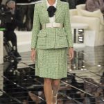 Sulla passerella di Chanel si consuma una rivoluzione silenziosa, che svincola la haute couture dalla sua identità primigenia: ad attuare la nuova rivoluzione è ancora una volta Karl Lagerfeld, che, intercettando un sentimento nuovo nei confronti dell’haute couture da parte del mercato, propone un’inversione di tendenza, tra tailleurini bon ton perfetti per il giorno e capi piumati da gran soirée. Nella cornice del Grand Palais sfila un’haute couture dai risvolti inediti: apre il défilé Arizona Muse, mannequin amatissima da kaiser Karl. Inizialmente è un tripudio di tailleur che sarebbero piaciuti a mademoiselle Coco. Tanta moda ma poca couture, forse. Ma ci piace e ci convince. Il tailleur si arricchisce di virtuosismi inediti, tra cinture alte che strizzano il punto vita e il filo di perle, che ora si porta alla caviglia. Con o senza colletto, il tailleur si indossa ora con cappello in stile Fifties e décolléte argentate. Il taglio è sartoriale e la tradizionale lana bouclé si arricchisce ora di fibre tessili che strizzano l’occhio alla sperimentazione. Moderno eppure evergreen, il tailleur rivendica il primato di una nuova couture, pensata ora anche per il dailywear. Poco dopo è la volta degli abiti lunghi: tra inedito minimalismo di lunghi abiti impreziositi da cintura in vita, si snoda una nuova “alta moda”, non più alla ricerca smodata del coup de theatre, ma amante delle silhouette pulite ed essenziali. Largo infine al genio Lagerfeld, che riporta in auge una moda scintillante, in un tripudio di cristalli e paillettes che illuminano lunghi abiti da red carpet. Sfila una donna che ama il lusso, a partire dalla scenografia, illuminata da un gioco fantasmagorico di specchi. Qui viene ricreato ad hoc l’atelier di Rue Cambon, che diviene location privilegiata per una parata di corsetti interamente ricoperti di paillettes e micro cristalli e piume di marabù, che bordano lunghi abiti a sirena ma anche abitini corti con gonna a ruota. Chiude il défilé l’abito da sposa, indossato da Lily-Rose Depp, giovanissima musa di Lagerfeld. In una nuvola di tulle sfila una sposa principesca e romantica.