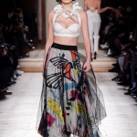 Un paesaggio silvestre fa da sfondo alla prima collezione di haute couture firmata da Maria Grazia Chiuri per Dior: in passerella si alternano giovani ninfe dallo sguardo trasparente, che indossano corone di fiori e boccioli di rosa. Suggestioni di virgiliana memoria si alternano a sottili divagazioni visionarie, in un anno che segna il 70esimo anniversario del New Look: correva l’anno 1947 quando Christian Dior rivoluzionava per sempre il corso della moda femminile. Maria Grazia Chiuri parte proprio dagli albori per una collezione ricca di ispirazioni eterogenee e suggestive. «Ho iniziato approcciando la storia couture di Dior che ha una grande tradizione ma che in questi 70 anni si è evoluta molto, anche seguendo i vari designer che hanno guidato la maison», ha dichiarato la designer. «Monsieur Dior ha messo le basi di un racconto che poi Yves Saint-Laurent e Marc Bohan hanno continuato e che, fino a Gianfranco Ferré, è stato un racconto di couture classica e tradizionale. John Galliano ha spettacolarizzato il tutto rendendola sognante e con Raf Simons il racconto ha esplorato la modernità. Io ho iniziato ora il rapporto con un atelier che ha dovuto mettersi al servizio di anime creative straordinarie e impegnative. E, in questo lavoro, ho cercato di mantenere l’aspetto couture più tradizionale e artigianale, che è proprio del mio essere italiana, insieme al côté più onirico della cultura francese. Il mio è un viaggio dentro il labirinto della couture… Un viaggio misterioso, difficile ma sapendo che alla fine c’è la luce». Nella cornice del parco del Musée Rodin si staglia un gioco di specchi fantasmagorici, che impreziosisce lussureggianti giardini ideali, su cui si staglia il défilé: qui sfilano le ninfe silvestri immaginate da Maria Grazia Chiuri, in bilico tra couture e volumi teatrali, che omaggiano il New Look, come i capi total black che aprono la sfilata. Largo poi a note dolci nelle trame floreali dipinte a mano e condite da note surrealiste: tripudio di tulle e simbologia allegorica che riporta alla mente l’opera di Jean Cocteau, grande amico di monsieur Dior. Boccioli di rosa si alternano a tarocchi e a dettagli presi in prestito dall’astrologia, in un’iconografia che guarda ad icone di stile leggendarie, da Leonor Fini alla marchesa Luisa Casati Stampa di Soncino: figure eteree e misteriose, che hanno sdoganato uno stile destinato a restare impresso nei libri di storia. I gioielli della collezione sono stati realizzati da Claude Lalanne, mentre le corone di fiori sono firmate da Stephen Jones. Largo a caleidoscopici giochi di tulle che si alternano a preziose sete plissé, in bilico tra opulenza e rigore. La sfilata, dedicata a Franca Sozzani, riporta in auge lo stile primigenio della maison Dior, tra note poetiche ed evanescenti.
