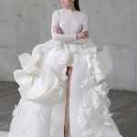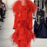 Stéphane Rolland trasfigura la pittura astratta in una collezione altamente evocativa, presentata in una galleria d’arte, sulle scia di Brancusi e Rodin. Giochi caleidoscopici di organza asimmetrica creano petali e calle, in una palette rigorosamente monocromatica che predilige bianco, nero e rosso, tra tocchi gold. Alcuni dei capi ricordano quelli indossati da Grace Jones negli anni Settanta, tra volumi esagerati e rosso passione. “Questa collezione estiva è scultorea, eterna e senza tempo ma mai rigida né nel tempo né nello spazio”, ha commentato lo stilista.
