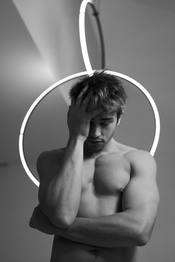 La sua casa, uno spazio immerso nel bianco e nella luce, un appartamento che sembra scelto dal bisogno di ripulirsi da qualche rumore di sottofondo; ogni oggetto acquistato pare stimolarlo e cercare la sua attenzione, le sue cure; questa totale assenza del colore culla e trasporta, il minimalismo architettonico svuotato da ogni orpello emana un’energia zen.