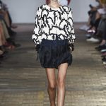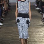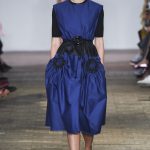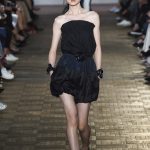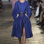 Lontano dagli eccessi, questo défilé viene scandito da oblò arricciati e ruches. La coulisse, motivo ricorrente nella sfilata, segna la vita dei capi.