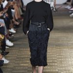 Sportmax torna alle origini, con una collezione che celebra l’identità primigenia del brand, tra note sportswear e tessuti techno. Sulla passerella della Milano Moda Donna sfila una collezione dinamica e minimale, tra volumi esasperati e suggestioni sporty. Da sempre divisa tra l’anima sportiva e la femminilità, la donna Sportmax tenta di coniugare i due poli opposti della propria personalità in un inedito sincretismo, che unisce i pilastri su cui si fonda l’heritage della griffe: maschile e femminile si fondono, insieme a note active e sofisticata sartorialità. La young label del gruppo Max Mara si rivolge ad una donna fortemente legata alla contemporaneità: largo a capi sportivi e silhouette oversize che sembrano strizzare l’occhio agli Eighties. L’atmosfera che si respira in passerella è nuova, in un inedito ritorno al passato, per un autunno/inverno 2017-18 vissuto attraverso gli occhi di una donna stanca di adattarsi a standard che non le appartengono: grintosa ed eclettica, la musa di Grazia Malagoli, direttore creativo del brand che fa capo al gruppo Max Mara, si riappropria di elementi che rientrano a pieno titolo nell’abbigliamento sportivo, impreziositi però da note femminili che fanno capolino qua e là. Largo a tute oversize, giacche e camicie, tra knitwear pregiato e materiali techno trapuntati, perfetti per affrontare il rigore inverale. Comfort e stile diventano il fil rouge di una sfilata coraggiosa, che vede una virata decisa verso il passato più autentico: tra materiali hi-tech e dettagli sporty-chic sfilano capi in total black: funzionali ed essenziali, le mise che si alternano sul catwalk vedono un tripudio di grafismi optical intervallati da tocchi arancio. Il logo torna prepotentemente alla ribalta e lo fa in chiave tutt’altro che low profile, divenendo onnipresente come inedita stampa che impreziosisce felpe e capispalla. Atletica e pratica, la donna Sportmax sfoggia leggings e tute workwear e maglioni raffiguranti slogan che inneggiano a correre e a praticare sport, in linea con lo spirito della collezione. Astenersi pigre.
