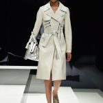 Capi iconici come il trench, vengono esibiti accanto ad abiti finemente minimali.
