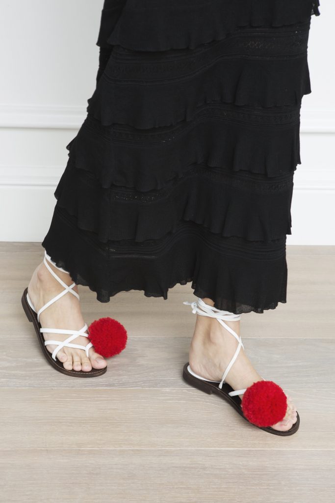 Spagnoleggiante talvolta, in questa Spring Summer 2018 il brand 16R Firenze di Romina Caponi si lascia ispirare dall’arte giapponese di Yayoi Kusama, dai suoi ossessivi pois di ogni dimensione, che nella collezione troviamo in forma di morbidi pompom sulle calzature.