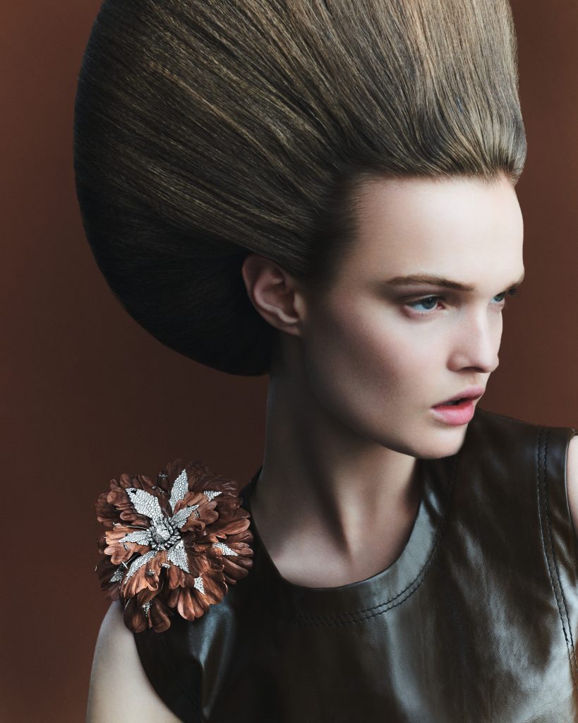 Solida e coi piedi per terra, Earth Woman ci invita a celebrare il potere della natura attraverso una geologia primitiva. Una palette di tinte ocra, brune e argilla si associa qui a forme organiche, sia animali che vegetali. Iniziamo dalla spilla Bois Diamant (Legno di Diamante), una spilla da spalla magnetica. Ciascun petalo di questo fiore immaginario è stato scansionato prima di essere riprodotto in palissandro Santos, per poi essere adagiato su una struttura in oro traforato. I pistilli di titanio vibrano delicatamente a ogni movimento della spilla, esaltandone il realismo, mentre la palette cromatica mette in discussione il concetto di natura.