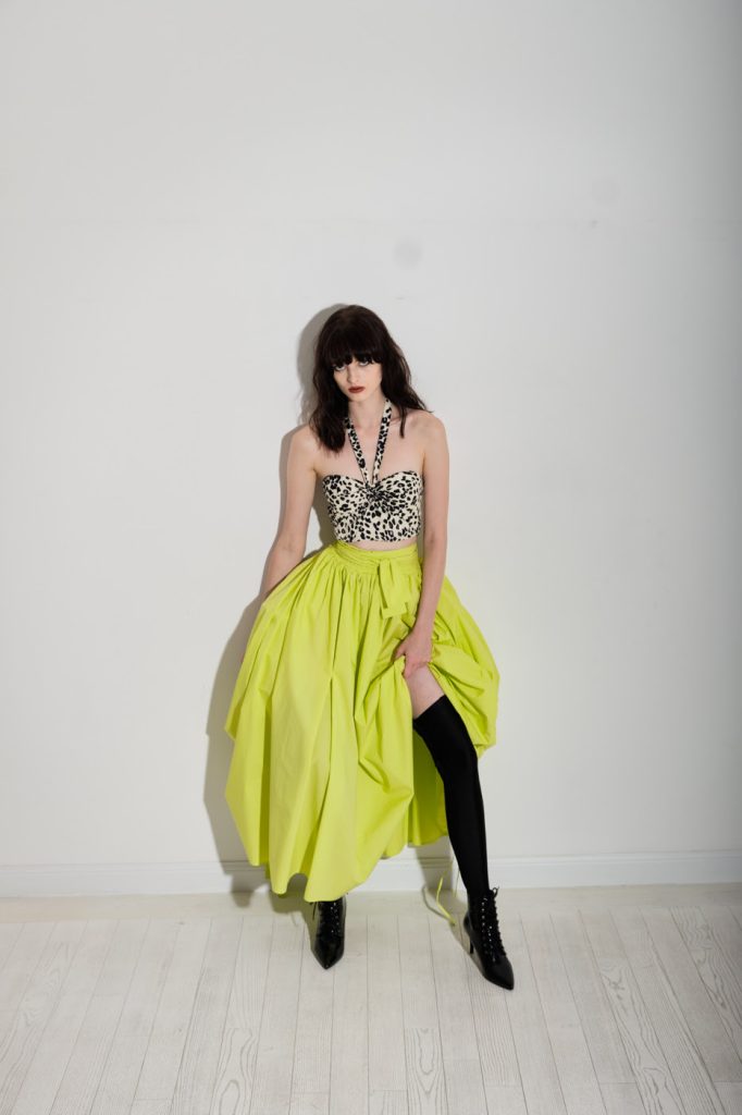 Prendono così vita i 31 modelli demi couture, creati sartorialmente, grazie ad un sapiente gioco di micro arricci, nodi, elastici e coulisse che ne regolano l’armonia dei volumi.