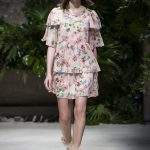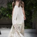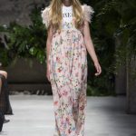 Una collezione femminile e zuccherosa, come i colori degli abiti in voile dall’azzurro myosotis al carta da zucchero.