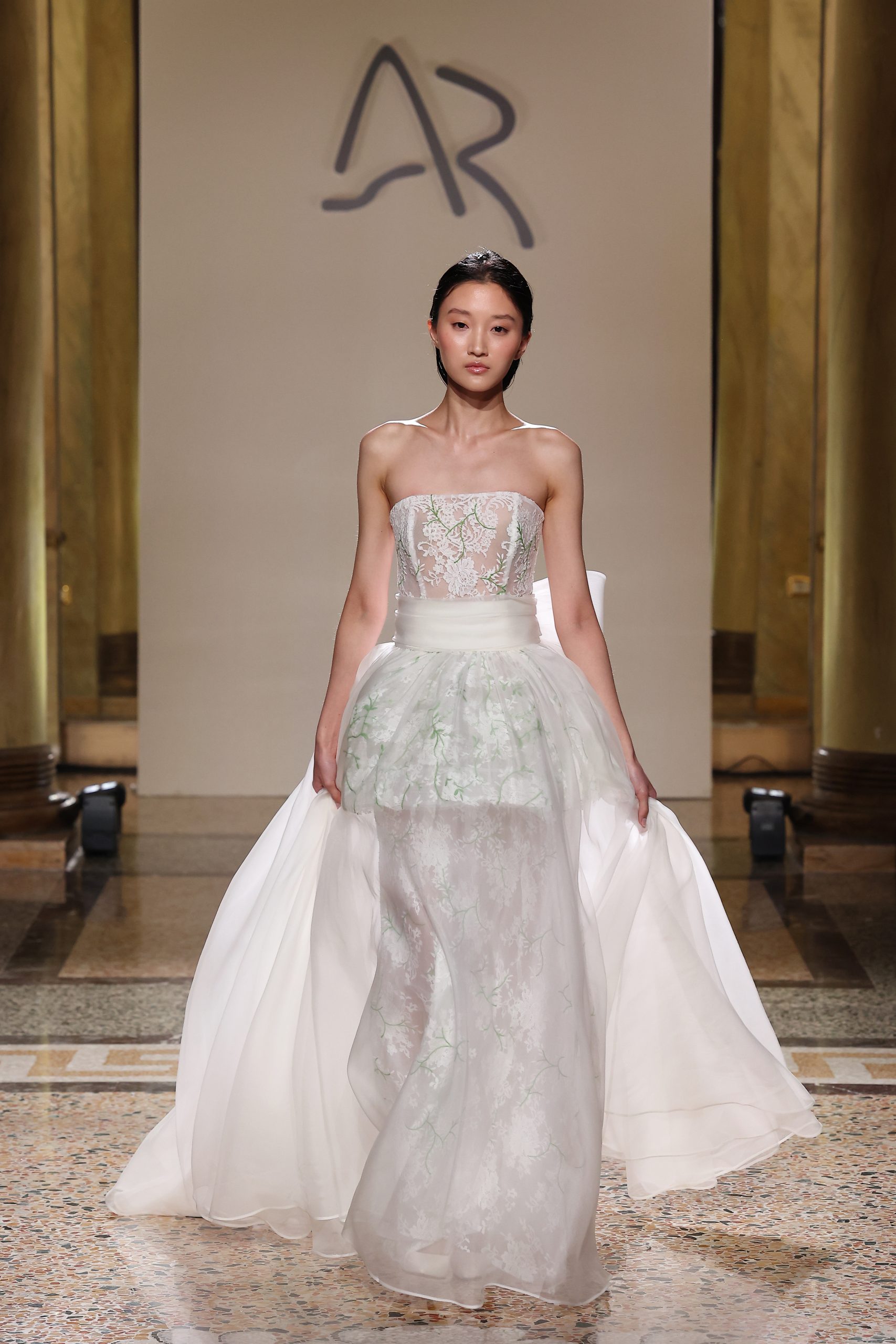 Nella splendida cornice della Società del Giardino, la collezione Princess Garden e la nuova capsule della collezione Atelier offrono un’esperienza in cui il mondo della sposa si fonde con l’alta modaAntonio Riva Milano porta la manifattura italiana sotto i riflettori del capoluogo lombardo.La Maison, fondata oltre 25 anni fa, e guidata dal Maestro couturier, ha sfilato il 12 aprile alle 18.30 in via San Paolo 10. Le luci si sono accese sugli abiti da sposa e sulla capsule Atelier, pensate per accompagnare le occasioni più speciali di una donna dinamica e raffinata.La collezione sposa Princess Garden, caratterizzata da linee pulite, tessuti pregiati e dettagli curati, fonde i tratti distintivi dell’alta sartoria con le tecnicalità più innovative. Le geometrie sartoriali e la conoscenza della silhouette femminile trovano la loro massima espressione nelle ventiquattro uscite, proposte su altrettante personalità versatili e moderne.Il mikado diventa un soffio, l’organza e i pizzi tracciano percorsi inediti come il raffia lace, strati impalpabili che si sovrappongono per creare volume nella leggerezza.