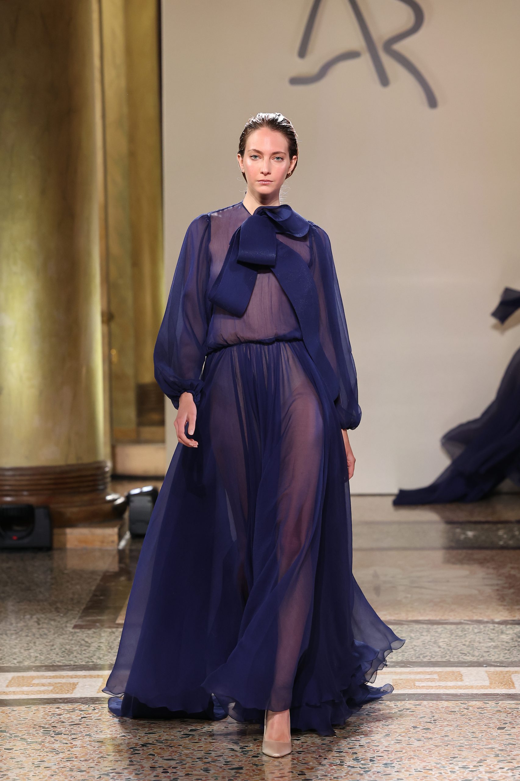 Creazioni fuori dal tempo, fluttuanti ed eteree, realizzate in colori tenui e tessuti see through, sono il tocco iniziale nella nuova capsule della collezione Atelier. La palette colori, dal blu cenere all’azzurro fino al nude agisce con la luce per restituire la sensazione di tridimensionalità. Antonio Riva gioca con i tessuti e le lavorazioni, dal creponne ai ricami a mano per finire con il mikado, offrendo una sensazione di delicata raffinatezza. Crini, jacquard e pizzi aggiungono texture ai capi e conferiscono un effetto romantico e misterioso.Il percorso, in continuo sviluppo, è confermato da una solida presenza sul territorio dove la Maison vanta a Milano l’Officina Creativa, in via della Moscova e l’Atelier a Palazzo Toschi Corneliani in Corso Venezia e, a Roma, l’Atelier a Palazzo Grazioli in via del Plebiscito, oltre alla Manifattura di Garlate, sul Lago di Como, dedicata alla produzione degli abiti da sposa.