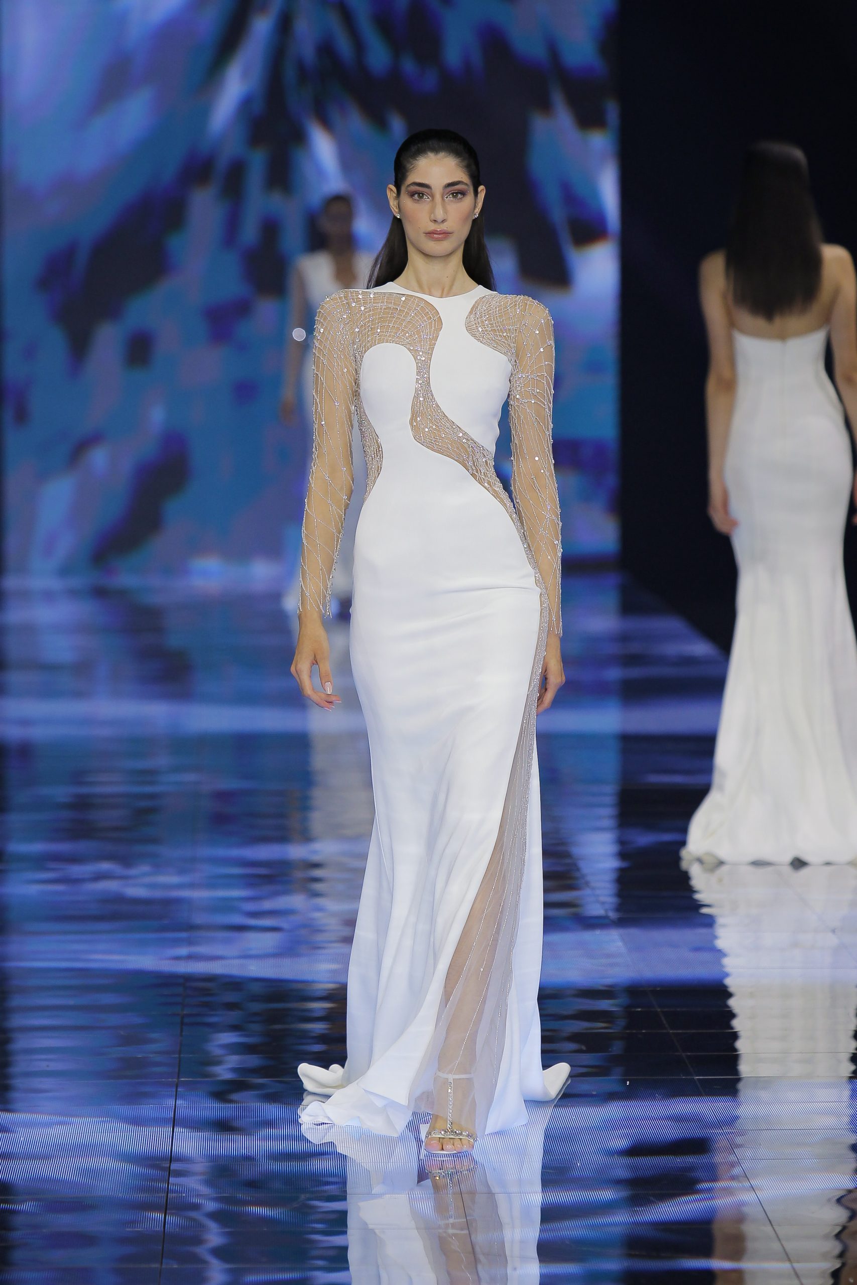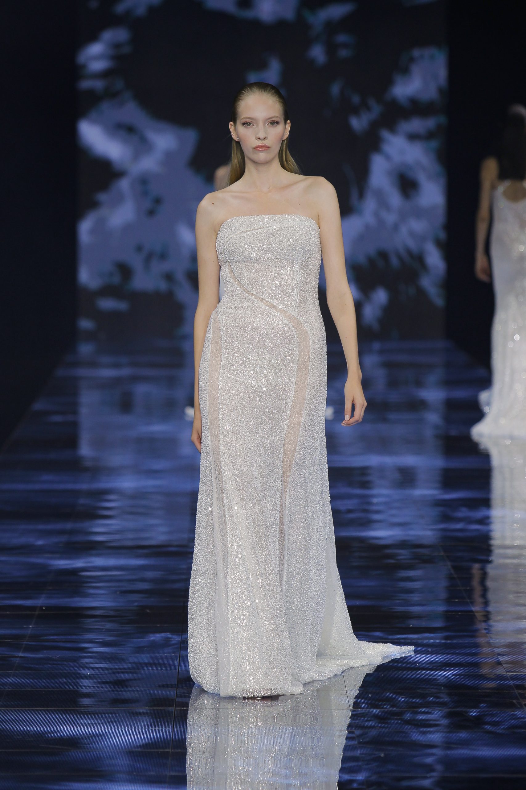 Lo show ha portato gli ospiti, più di 1200 persone, in un viaggio spettacolare attraverso le quattro stagioni con l’ispirazione agli elementi naturali e le stagioni stesse. Il momento di maggior impatto è stato quando la top model internazionale Blanca Padilla ha aperto la sfilata e l’ex angelo di Victoria’s Secret, Sara Sampaio, l’ha conclusa con un grande abito a matrioska che sembrava un fiore ma che al suo interno racchiudeva un’incredibile tuta sexy, realizzata con un tessuto interamente perlato.