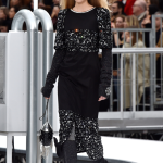 Invasioni spaziali in passerella da Chanel: Karl Legerfeld declina il suo estro in chiave galattica, per una collezione autunno/inverno 2017-18 ricca di charme. Nella cornice del Grand Palais un razzo gigante alto 35 metri saluta gli ospiti del défilé. Eccesso, stravaganza, opulenza sono le keyword di una sfilata evento in cui la maison del lusso per antonomasia rivive una nuova stagione grazie al genio creativo di Kaiser Karl: dimenticate note streetwear, qui si punta a suggestioni luxury, sapientemente smitizzate da mise iconiche che si aprono però con garbo alla contemporaneità. Una ventata di freschezza irrompe prepotentemente nelle ultime collezioni, per una donna che avverte un sempre più impellente bisogno di novità: ma l’heritage più autentico della maison fondata da mademoiselle Coco non verrà mai snaturato. E se il tradizionale tweed dal piglio bon ton si apre ora ad inedite suggestioni da Space oddities, i risvolti Sixties non sono però scontati: il mood spaziale à la Lagelfeld poco o nulla ha da attingere a nomi che invece basarono il proprio successo in gran parte su questo filone, ad esempio Courrèges. “Ci sono capi spaziali ma non stupidi come quelli degli anni Sessanta”, coì ha commentato Lagerfeld la collezione. Tante sono le immagini che vengono evocate attraverso capi sfarzosi: il cielo notturno, la Via Lattea, il suolo di Marte tempestano capi in lurex in una pioggia di paillettes e cristalli. Largo anche a note argentate che evocano universi siderali e suggestioni lunari, tra tocchi di blu che ricordano un’aurora boreale. Grigio, bianco e nero dominano nella palette cromatica, accanto a rosso, blu e porpora, in una collezione che sembra pensata per calcare una superficie planetaria. Eterogenee le ispirazioni per le silhouette, che si adattano a molteplici esigenze. Largo anche a pantaloni cropped dal mood sporty-chic, che si alternano a stampe galattiche. Stivali glitterati ai piedi e dischi lunari come borse costituiscono gli accessori cult della prossima stagione inverale.