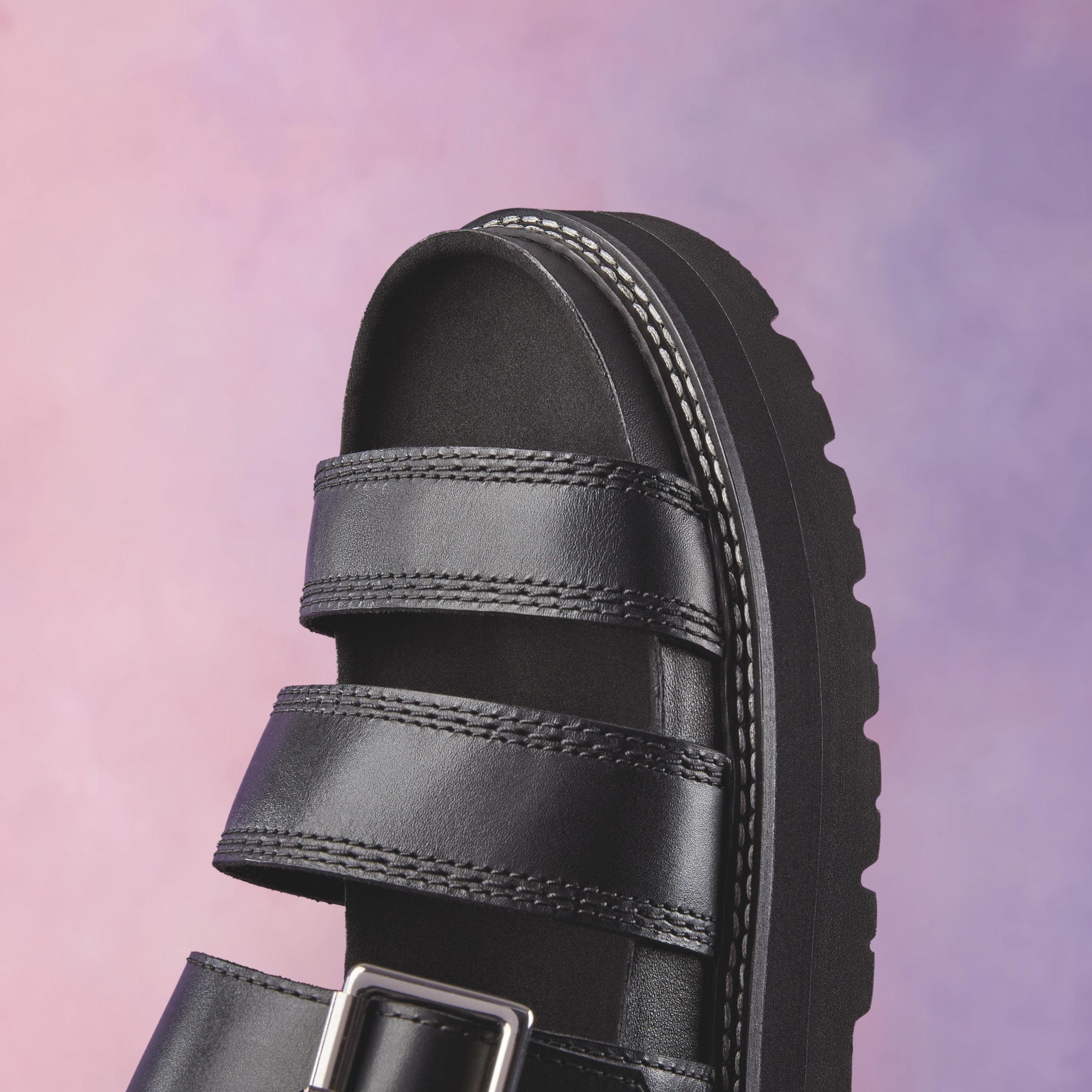 Perfetto per la stagione estiva, il sandalo Orianna Over è realizzato con una tomaia in pelle nera prodotta responsabilmente. Il platform è trendy, leggero e sagomato per offrire un maggiore comfort e uno stile moderno. Adatto per ogni occasione, Orianna Over è il modello di punta di quest’estate.