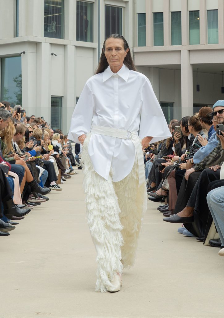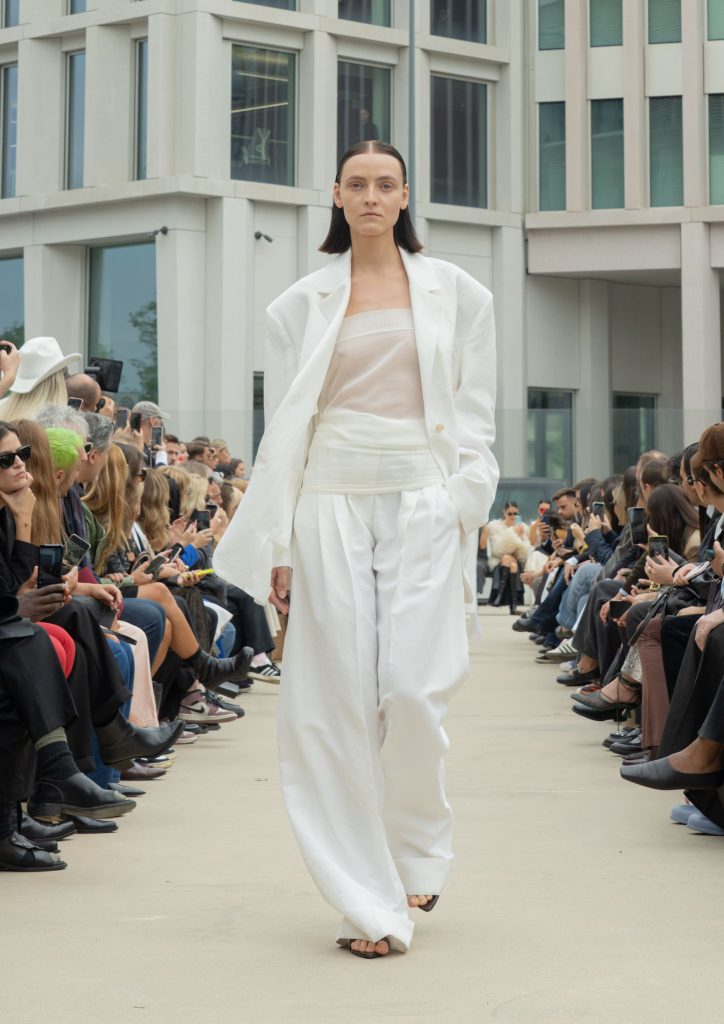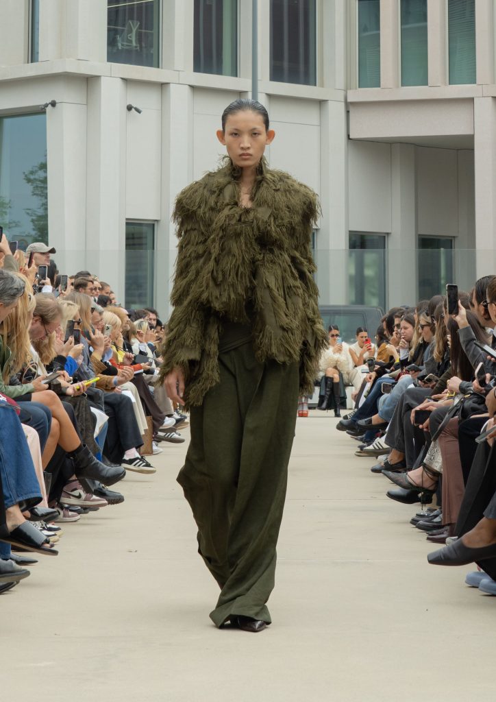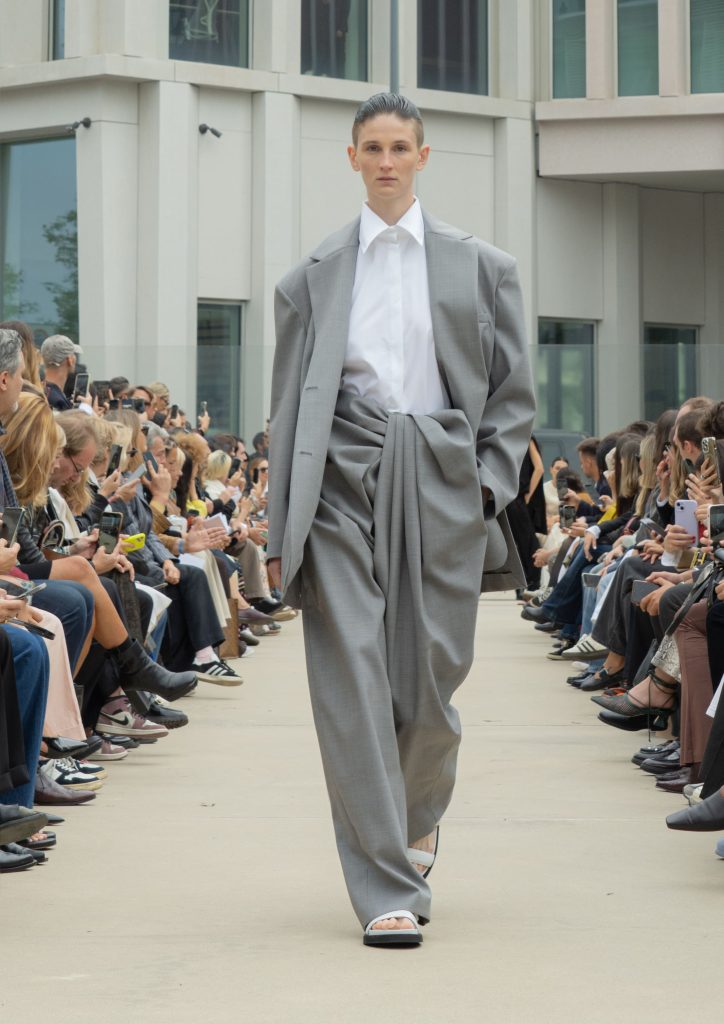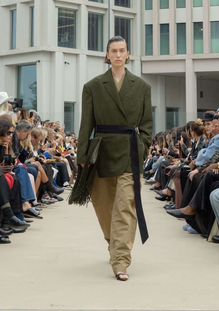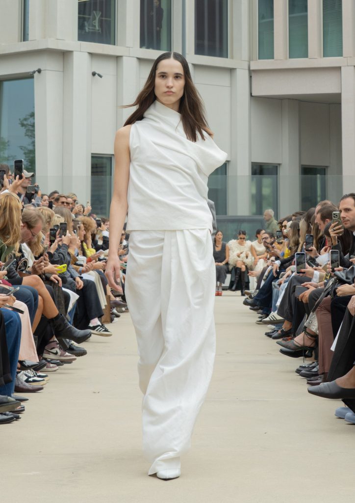 Il tema della leggerezza, della brezza sul viso, corre in tutta la collezione, attraverso i volumi che si fanno più avvolgenti e protettivi, disegnando un nuovo ecosistema che cerca, come sempre nell’estetica di CALCATERRA, di rinascere allontanandoci dalla quotidianità del nostro tempo. È così che anche il pantalone perde il suo tailoring, abbandonando