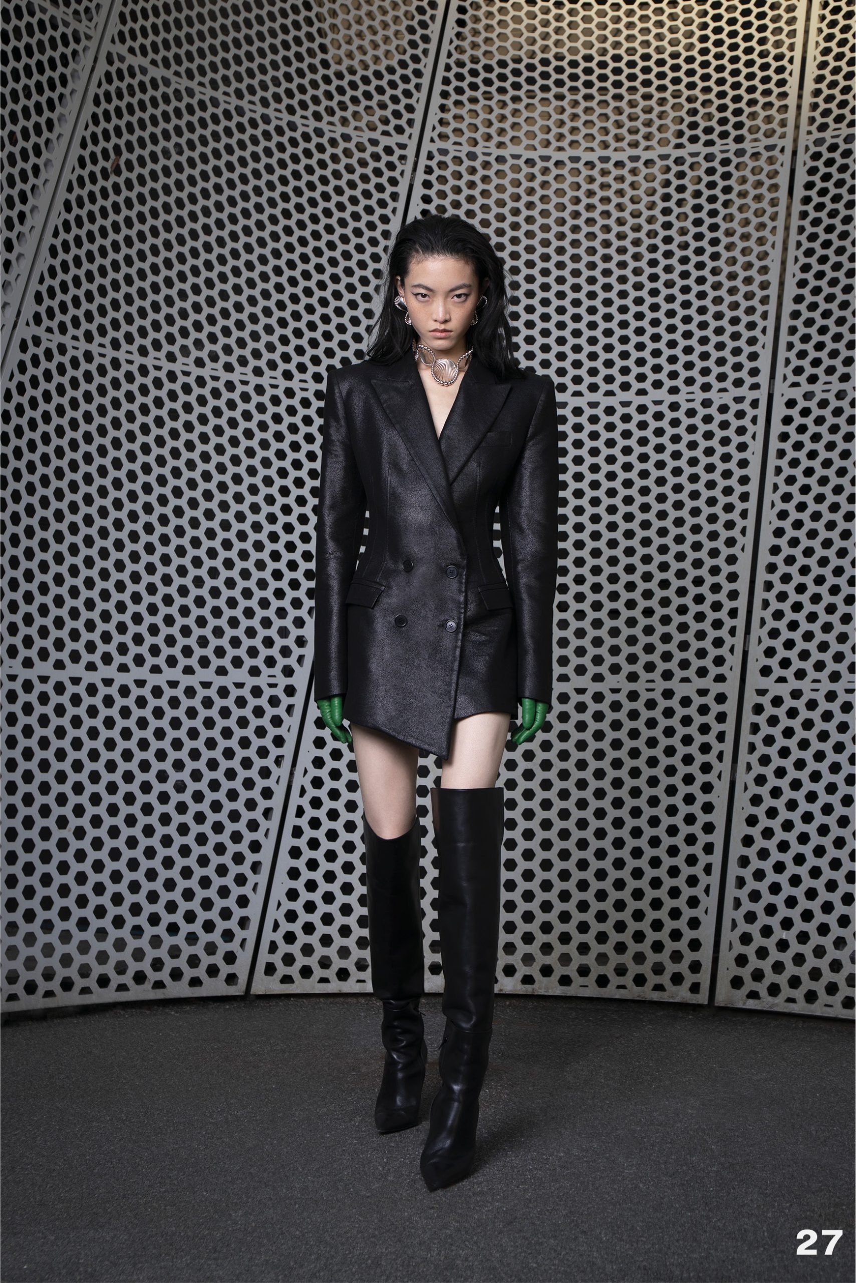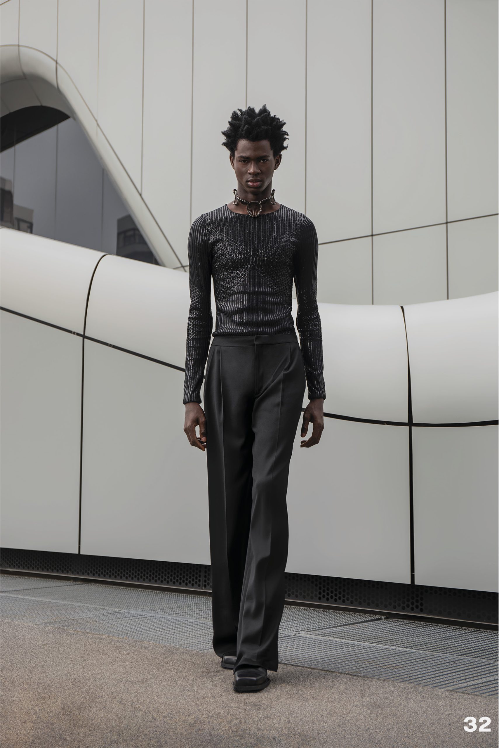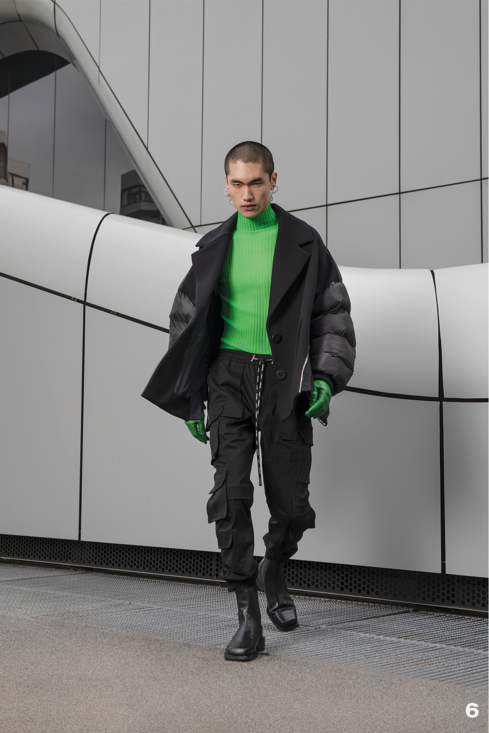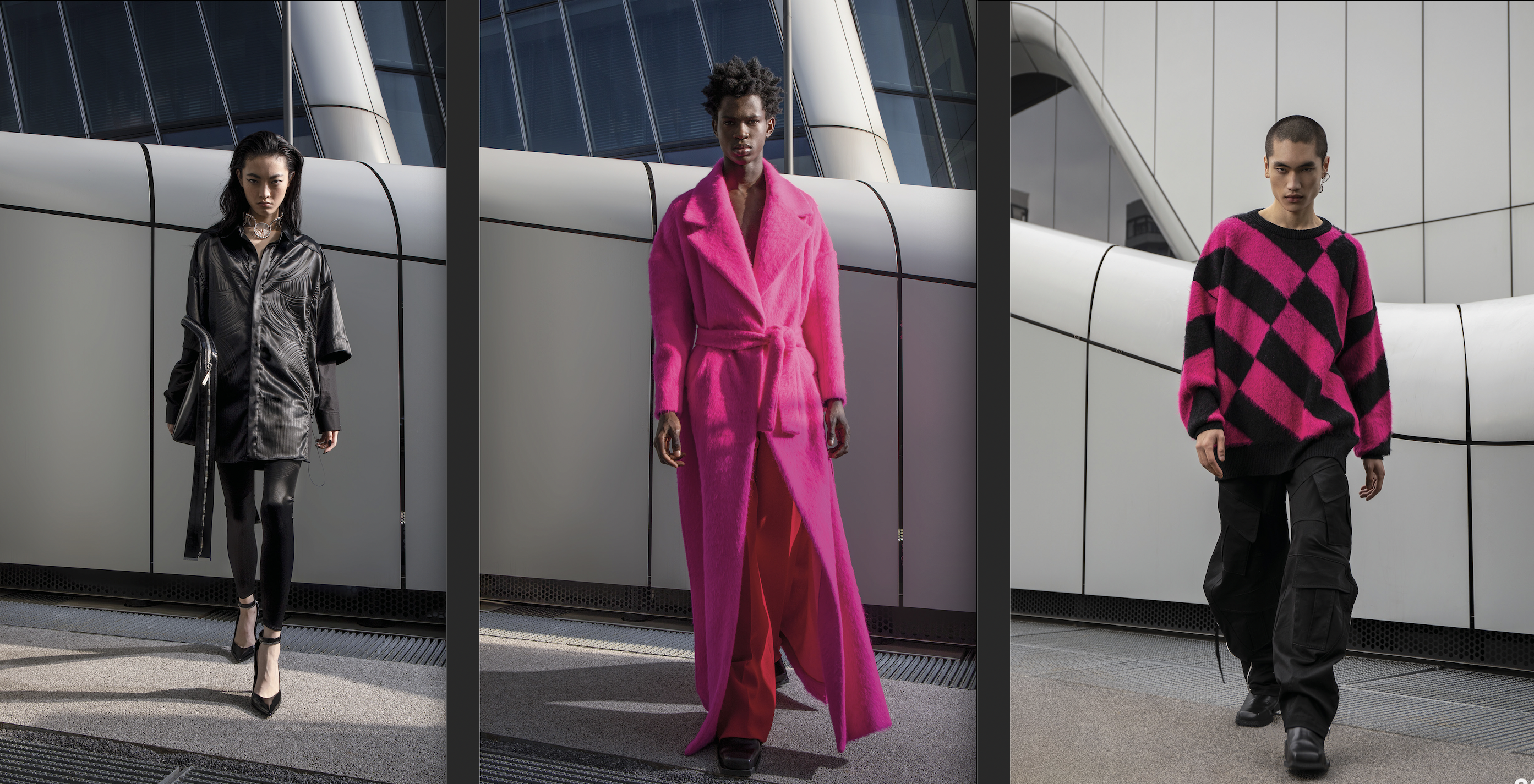 Cappotti cocoon oversize in morbido mohair dai colori esplosivi si alternano a caban piumini double-face. Blazer sartoriali dai tagli rigorosi, evidenziati da spalle ampie ma irreprensibili nella loro geometria grafica. Pantaloni genderless che mescolano i cromosomi X e Y, creando un equilibrio fluido, audace, senza legami e senza confini.