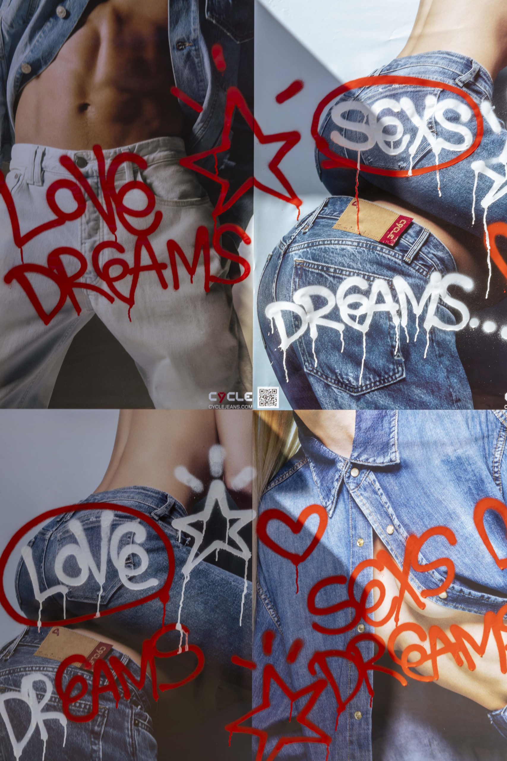 Cycle marchio di luxury denim 100% made in Italy lancia la sua campagna Spring Summer 23 mediante un’attività di wild posting in collaborazione con l’artista Sexs Dreams, il quale ha realizzato il suo tag live personalizzando le immagini della campagna.