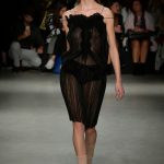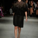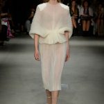 I bianchi sale illuminano sufi-tuniques in popeline e gli abiti dai generosi drappeggi sul retro, i ricami dai fili dorati di conchiglie, regalano l’aria regale anche nelle notti più scure, jacquard moire’ tramati ottoman e organze disegnano macro rouffle e balze oversize.