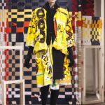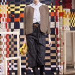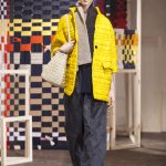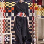 Con l’accento sui colori primari del giallo, blu e rosso, sfila una collezione che richiama i toni della terra, tra i sabbia e i beige con abbinate cloche nere, guanti e i riconoscibili cesti lavorati a mano usati come maxi bag.