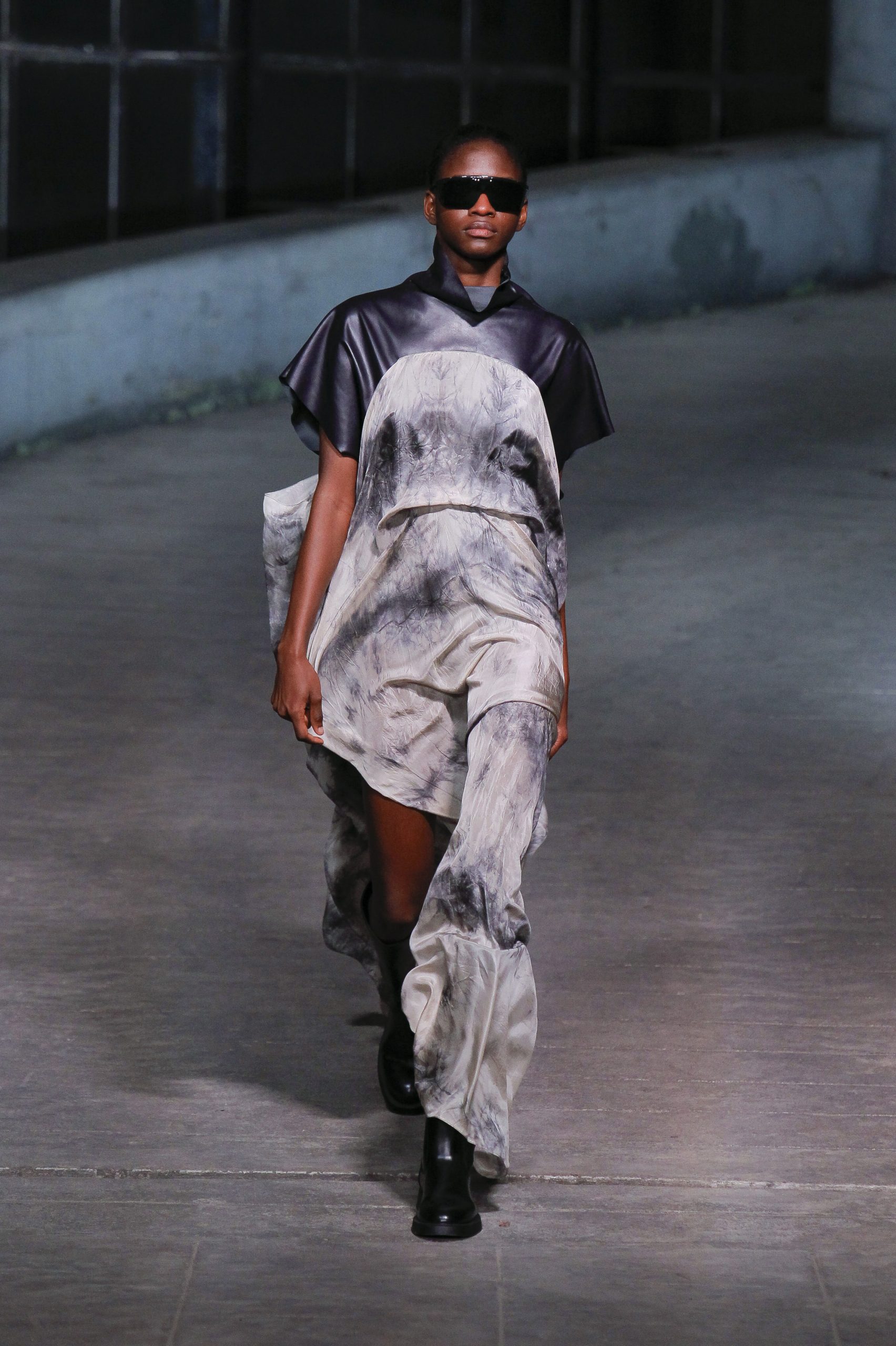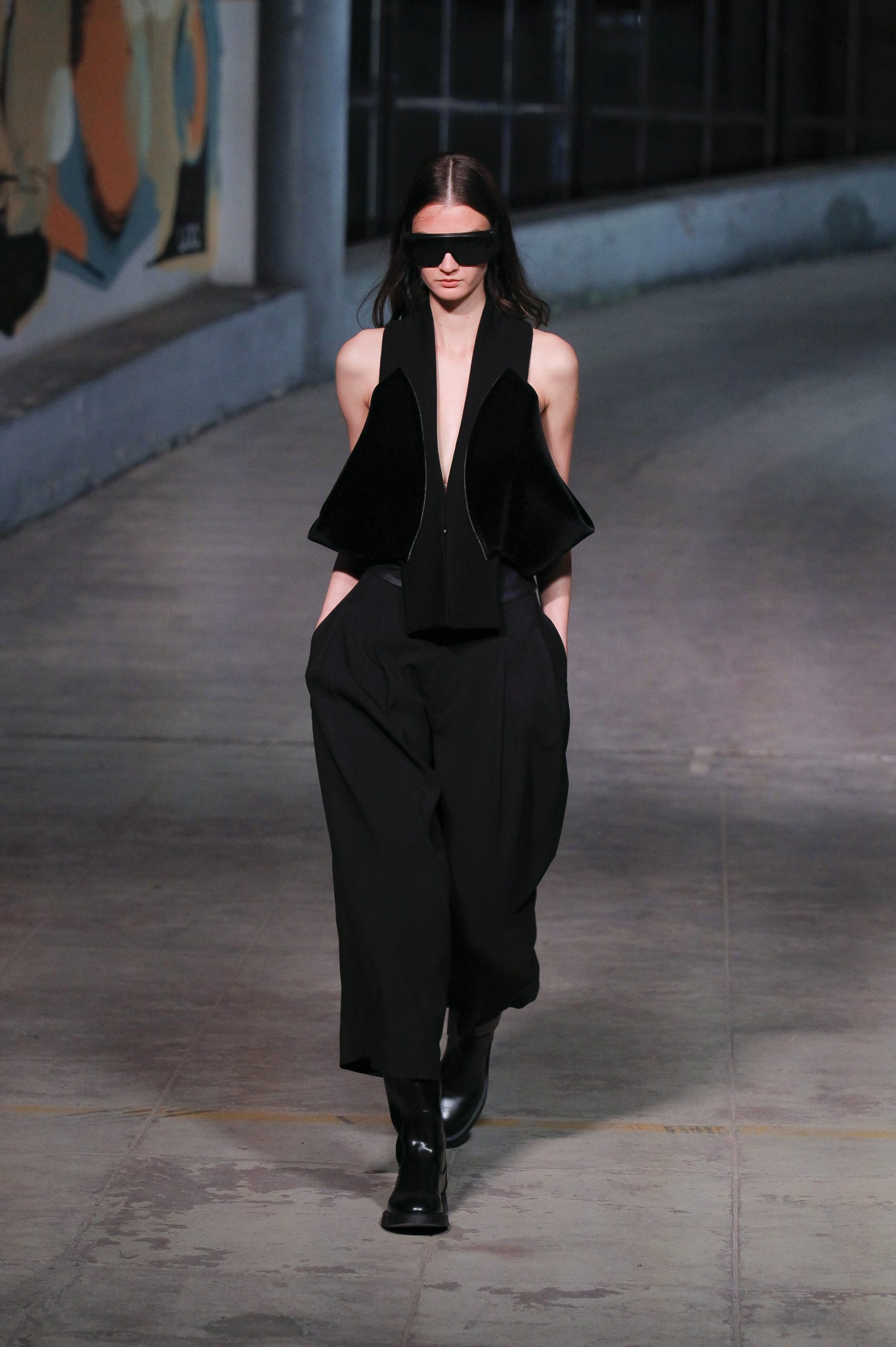 Forte e delicata, fluida e geometrica, la donna DAVII è una guerriera sensuale, il cui nuovo guardaroba giustappone abiti-tunica lunghi e drappeggiati, stratificati sopra e sotto kimono scultorei in ecopelle e giacche strutturate con maniche-guanto.