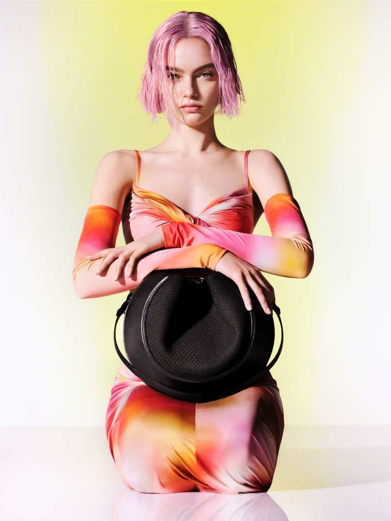 Realizzati in pelle responsabile, gli accessori sono il tocco finale perfetto per i look di questa collezione. Uno di questi è una reinterpretazione in marrone e in formato mini dell’iconica Mantis bag, che abbiamo potuto vedere nella collezione precedente e nella campagna FW22 di Desigual con Nathy Peluso. Ad essa si aggiungono altri due articoli: una borsa a secchiello e un’altra ispirata alla forma sinuosa delle conchiglie, entrambe con pannelli in cotone e pelle. Come calzature, Maitrepierre fonde mocassini e sneakers e crea un originale ibrido (sempre in rosa).
