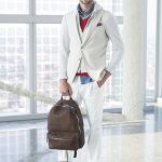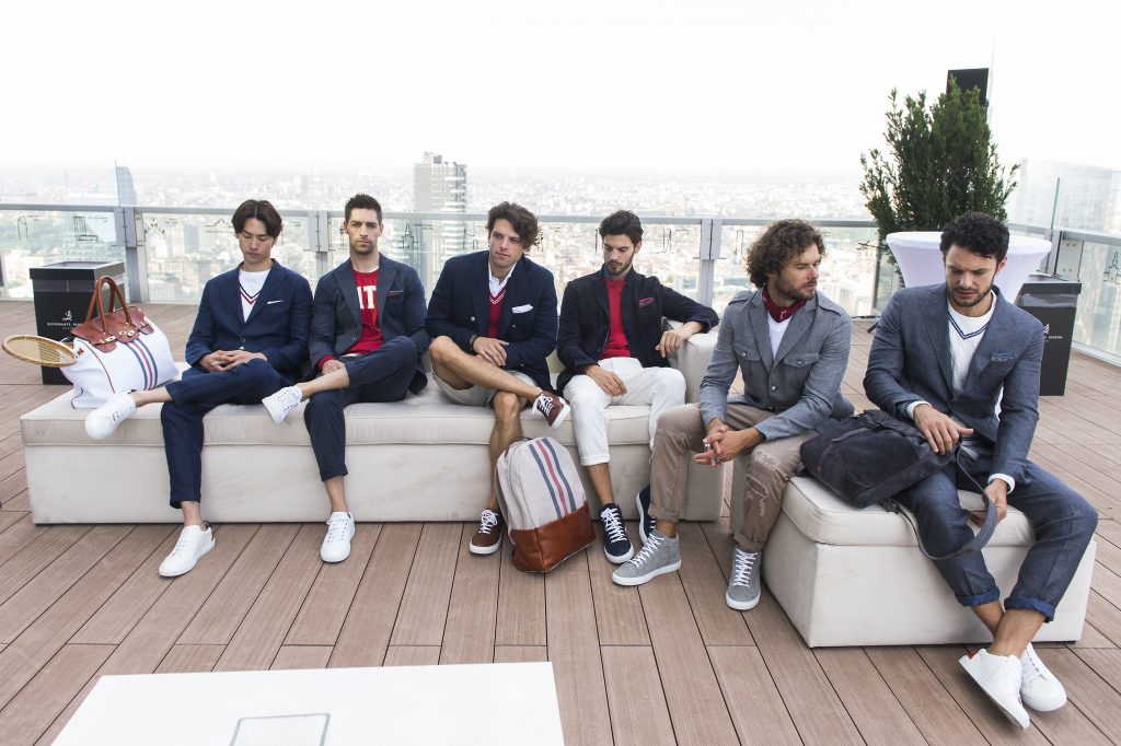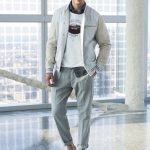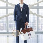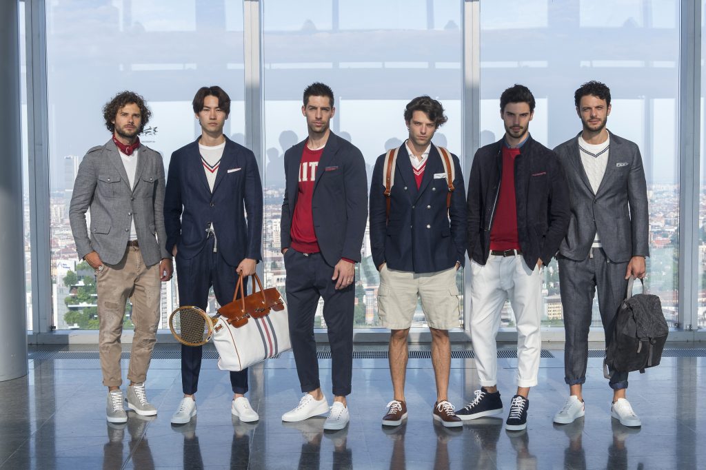 Così, l’abito classico è da portare con una felpa o con una maglia colorata di matrice sportiva; le giacche doppio petto, in seta con bottoni in metallo, sono da indossare su t-shirt e denim vintage; i pantaloni jogger vengono abbinati a giacche costruite in tessuti italiani pregiati, ma resi Active da trattamenti antivento idrorepellenti, o da interni staccabili pensati per l’uomo che viaggia; e contaminano i capi basici con dettagli sport, le righe tennis anni ’60 e quelle verticali del baseball applicate a maglie, bomber, pantaloni.