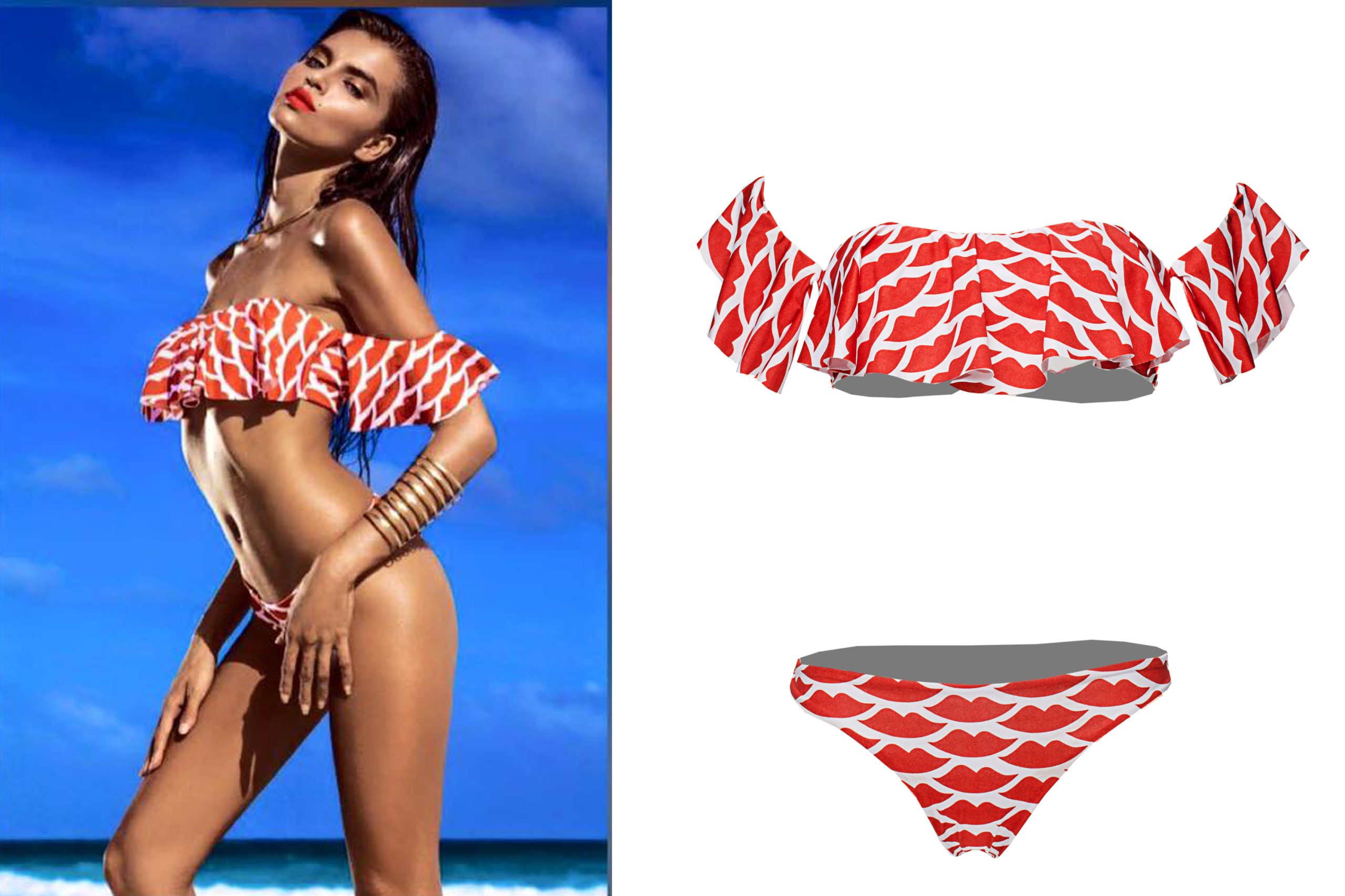 La collezione si compone di costumi dalle scollature profonde e incroci decisi, bikini con slip a vita alta, con dei richiami fifties, laccetti che avvolgono la vita, volant per i top che regalano volume al seno.