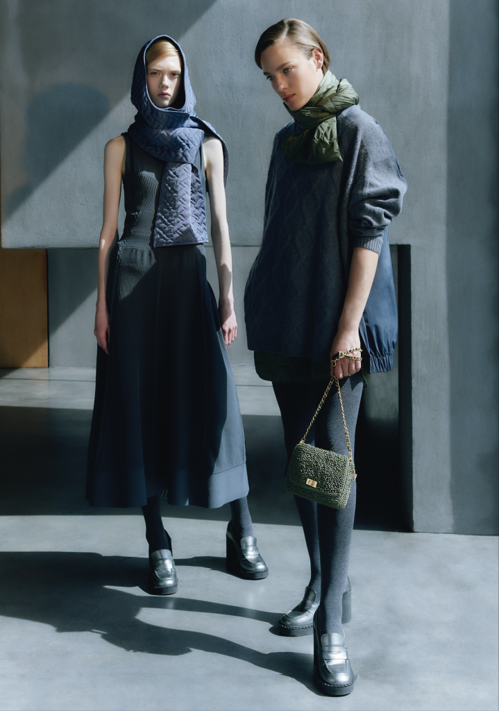 Un mix unico di arte contemporanea, cultura, architettura sono declinati sugli abiti sotto forma di shape sofisticate, colori brillanti e nuove texture. I capi femminili si abbinano bene a look più androgini, così come pezzi sporty si accostano ad abiti più sensuali in un perfetto equilibrio tra bellezza della sobrietà, tipicamente francese, che proprio a Parigi, dove la direttrice creativa Izumi Ogino ha viaggiato spesso per dar vita a questa collezione, viene definito chic-décontracté. Ai monumenti della capitale sono ispirati molti degli abiti, e in particolare le influenze architettoniche arrivano da “L’Arc de Triomphe avvolto”, il progetto prodotto da Christo e Jeanne-Claude, riproposto attraverso un gioco di plissé che creano volumi scultorei su gonne e abiti.