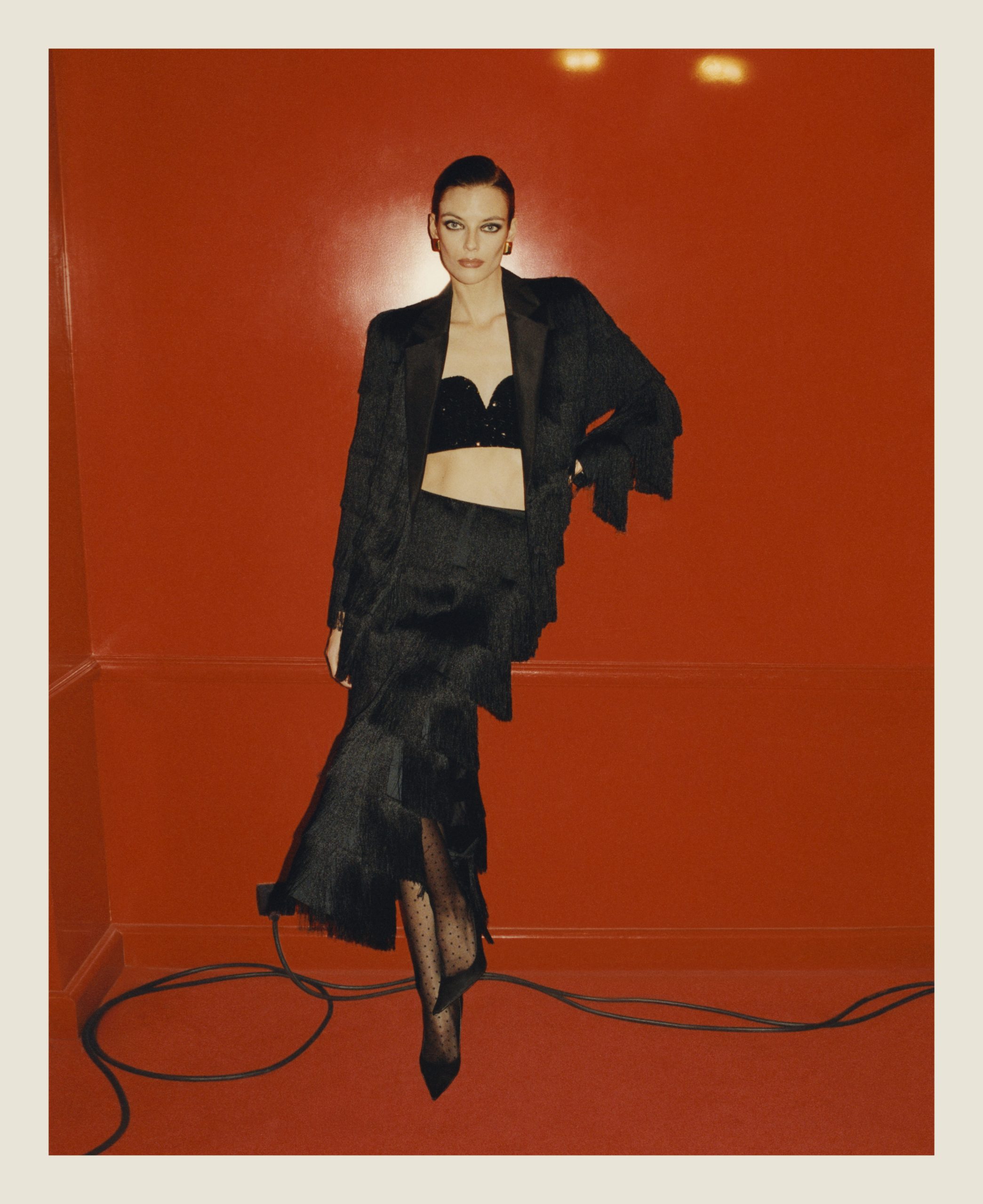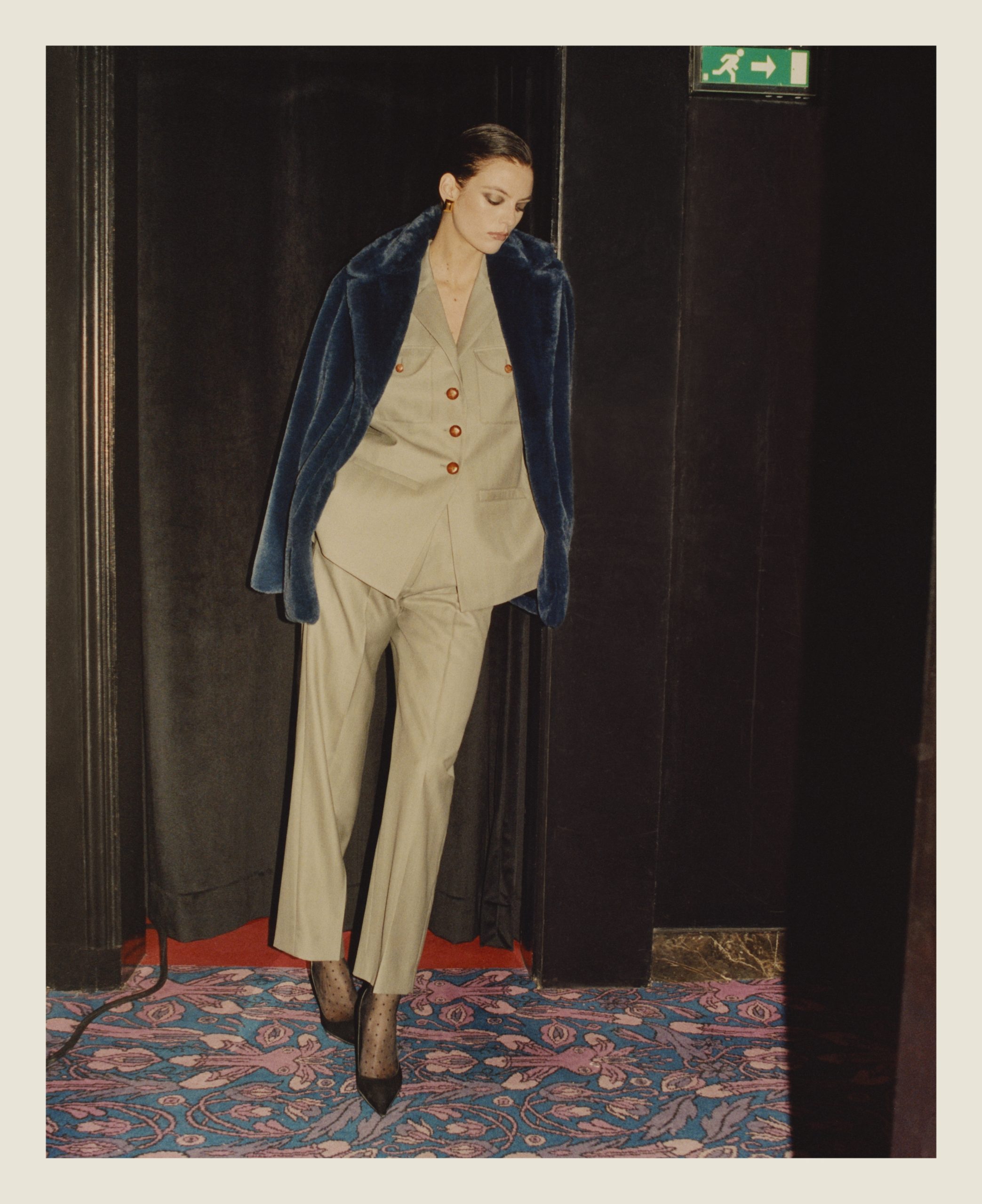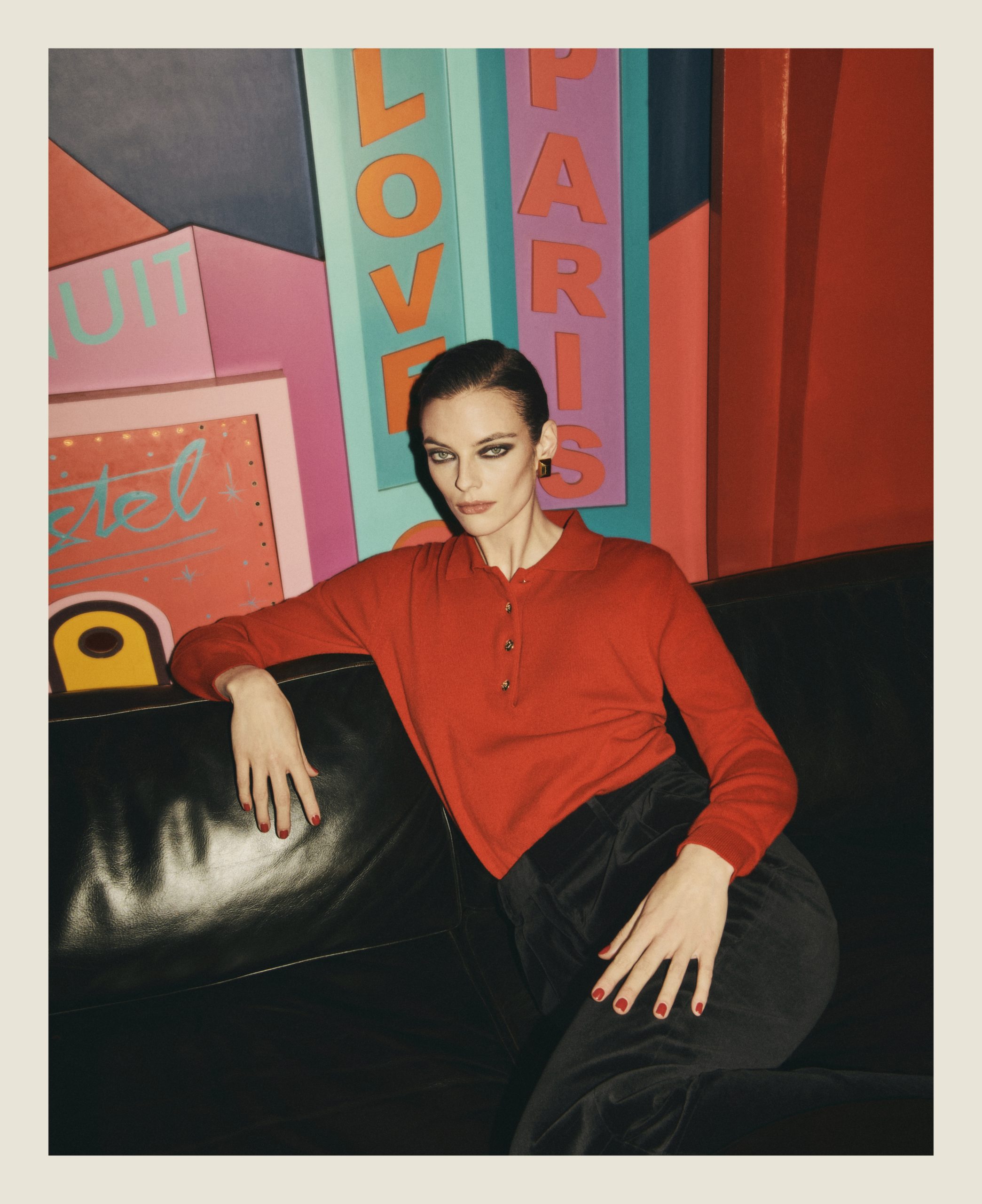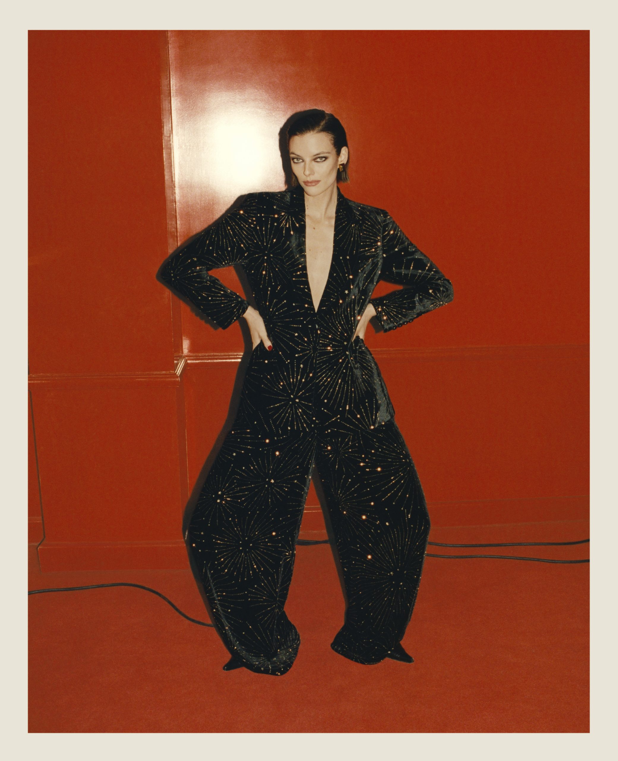 collezione BLAZÉ Autunno/Inverno 2023, che pur sofisticata e borghese, si colora di una nuova sensuale femminilità, perfettamente controbilanciata da tocchi maschili. Con una certa nostalgia vengono rievocate le atmosfere degli anni Ottanta nelle decorazioni scintillanti e nei dettagli preziosi, sottolineando l’appeal notturno della collezione. Il nuovo simbolo del marchio, il cavalluccio marino, fa capolino qua e là – su bottoni metallici, ma anche come piccoli ricami – segnando il nuovo corso del brand. Ruba la scena il modello Heart, che nasce da un classico blazer dall’ampio revers che si trasforma in un abito seducente, arricchito da bottoni metallici. Un pattern di fuochi d’artificio è ricreato con strass sul Chiller blazer in velluto nero abbinato agli ampi pantaloni pantaloni Fox, mentre un ricamo di paillettes dona un effetto materico e sfavillante al Chiller blazer indossato con il top Clyde, ma anche al femminile abito Konik. Il party mood continua con un completo in cui il bolero Gliss bordato di velluto e la minigonna Coci sono proposti in un bouclé multicolore realizzato con fili metallici. Lucide paillettes dalla forma squadrata decorano il top Clyde abbinato alla gonna midi Sussex coordinata, ma anche l’abito monospalla Manipur indossato sotto il nuovo bomber Serama, a ricreare uno dei look più iconici di Jane Birkin. Pensata per danzare tutta la notte, la gonna Appaloosa è ricoperta da una cascata di frange dall’effetto seta, così come la giacca abbinata. Aggiunge un tocco floreale la stampa anni Settanta di Mantero, riproposta su seta per la tuta Clyde indossata con il blazer Everynight coordinato. Per una femminilità più sfrontata, il nuovo cappotto doppiopetto Moroseta e il Gliss bolero in bouclé, abbinato alla minigonna Coci e alla camicia Berber di seta, sono proposti in un’accesa sfumatura rosso fuoco. Al contempo, tonalità anni Settanta di blu oltremare e rame caratterizzano rispettivamente la morbida e avvolgente giacca in faux fur Hunny e il completo con pantaloncini indossato con il blazer Everynight. Lo spirito senza tempo del marchio viene sottolineato dalle polo Highland in maglia, abbinate agli iconici blazer con motivi sartoriali manish, mentre i maglioni Highland – dalle spalle accentuate, scolli a V profondi e piccoli ricami di cavallucci marini – sono intrisi di raffinata sensualità.