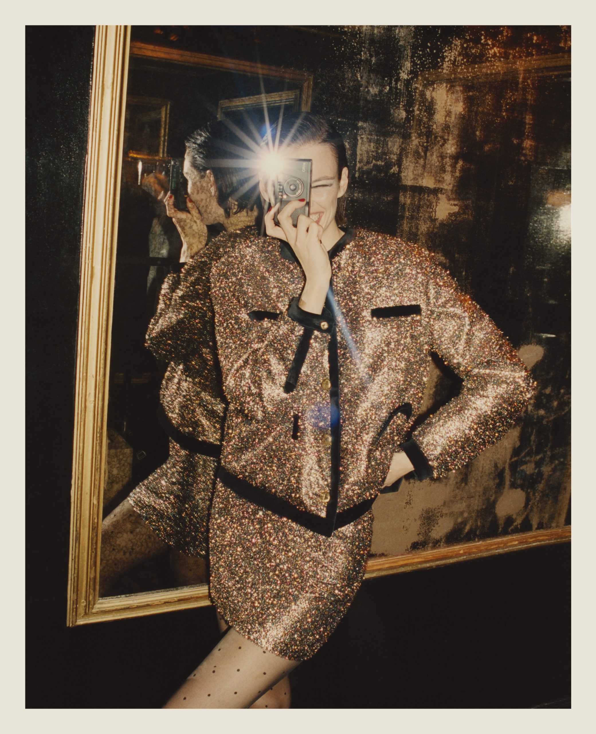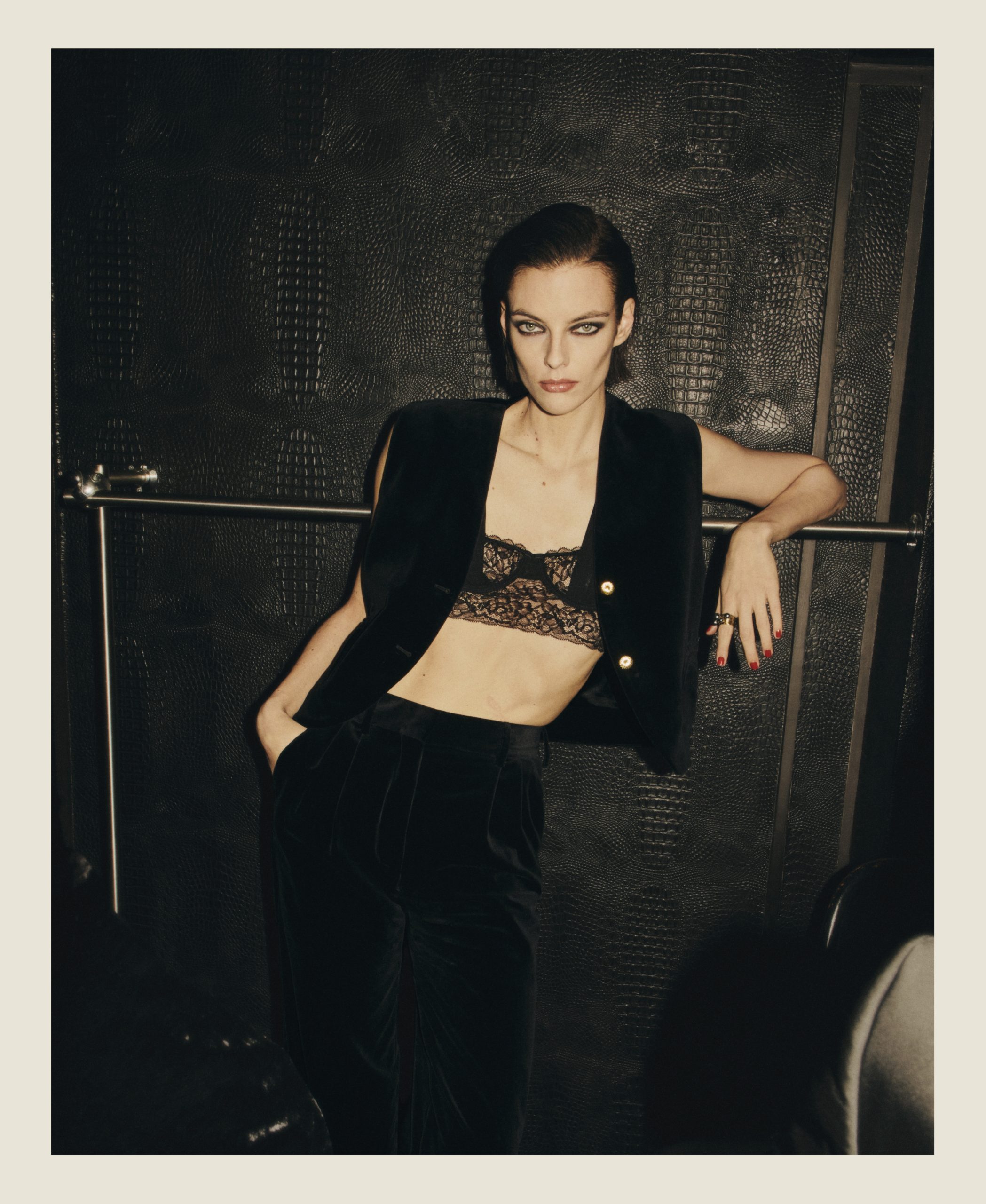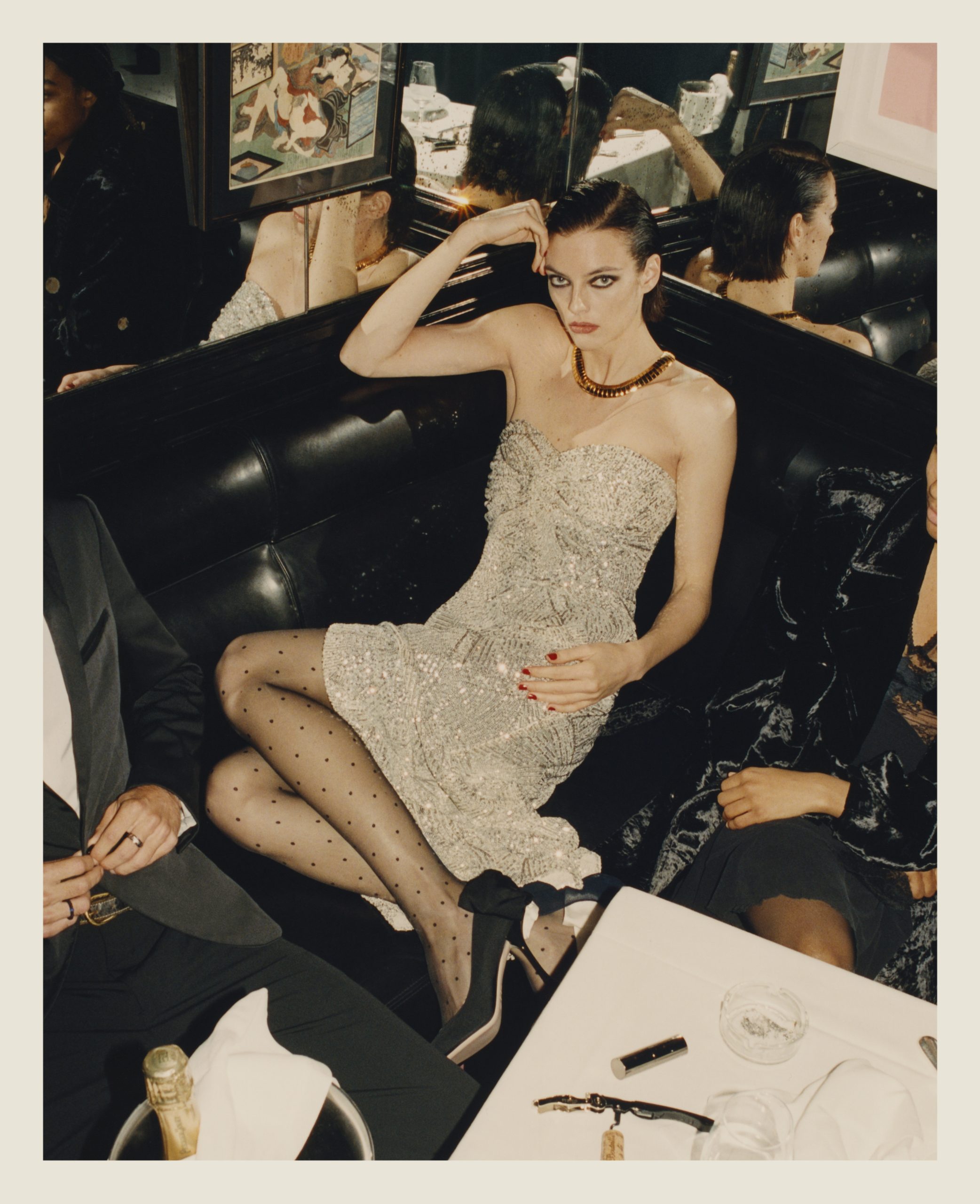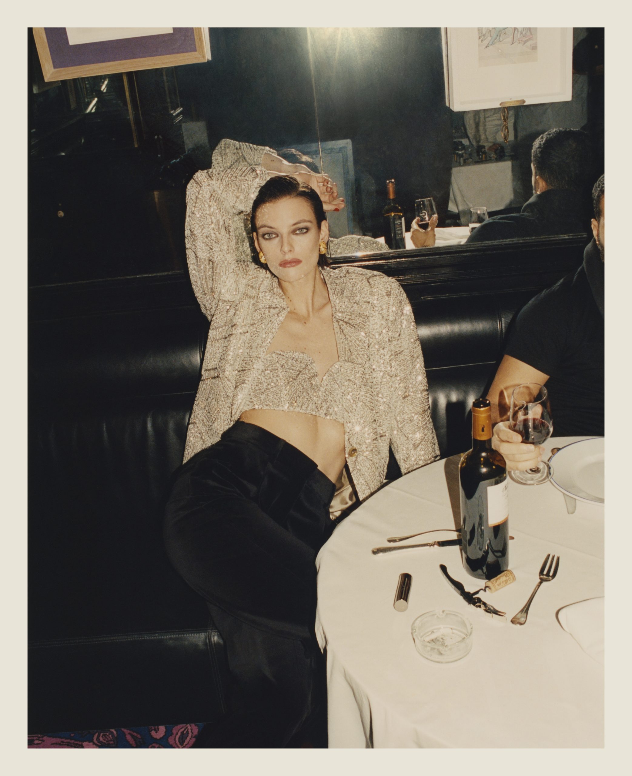 collezione BLAZÉ Autunno/Inverno 2023, che pur sofisticata e borghese, si colora di una nuova sensuale femminilità, perfettamente controbilanciata da tocchi maschili. Con una certa nostalgia vengono rievocate le atmosfere degli anni Ottanta nelle decorazioni scintillanti e nei dettagli preziosi, sottolineando l’appeal notturno della collezione. Il nuovo simbolo del marchio, il cavalluccio marino, fa capolino qua e là – su bottoni metallici, ma anche come piccoli ricami – segnando il nuovo corso del brand. Ruba la scena il modello Heart, che nasce da un classico blazer dall’ampio revers che si trasforma in un abito seducente, arricchito da bottoni metallici. Un pattern di fuochi d’artificio è ricreato con strass sul Chiller blazer in velluto nero abbinato agli ampi pantaloni pantaloni Fox, mentre un ricamo di paillettes dona un effetto materico e sfavillante al Chiller blazer indossato con il top Clyde, ma anche al femminile abito Konik. Il party mood continua con un completo in cui il bolero Gliss bordato di velluto e la minigonna Coci sono proposti in un bouclé multicolore realizzato con fili metallici. Lucide paillettes dalla forma squadrata decorano il top Clyde abbinato alla gonna midi Sussex coordinata, ma anche l’abito monospalla Manipur indossato sotto il nuovo bomber Serama, a ricreare uno dei look più iconici di Jane Birkin. Pensata per danzare tutta la notte, la gonna Appaloosa è ricoperta da una cascata di frange dall’effetto seta, così come la giacca abbinata. Aggiunge un tocco floreale la stampa anni Settanta di Mantero, riproposta su seta per la tuta Clyde indossata con il blazer Everynight coordinato. Per una femminilità più sfrontata, il nuovo cappotto doppiopetto Moroseta e il Gliss bolero in bouclé, abbinato alla minigonna Coci e alla camicia Berber di seta, sono proposti in un’accesa sfumatura rosso fuoco. Al contempo, tonalità anni Settanta di blu oltremare e rame caratterizzano rispettivamente la morbida e avvolgente giacca in faux fur Hunny e il completo con pantaloncini indossato con il blazer Everynight. Lo spirito senza tempo del marchio viene sottolineato dalle polo Highland in maglia, abbinate agli iconici blazer con motivi sartoriali manish, mentre i maglioni Highland – dalle spalle accentuate, scolli a V profondi e piccoli ricami di cavallucci marini – sono intrisi di raffinata sensualità.
