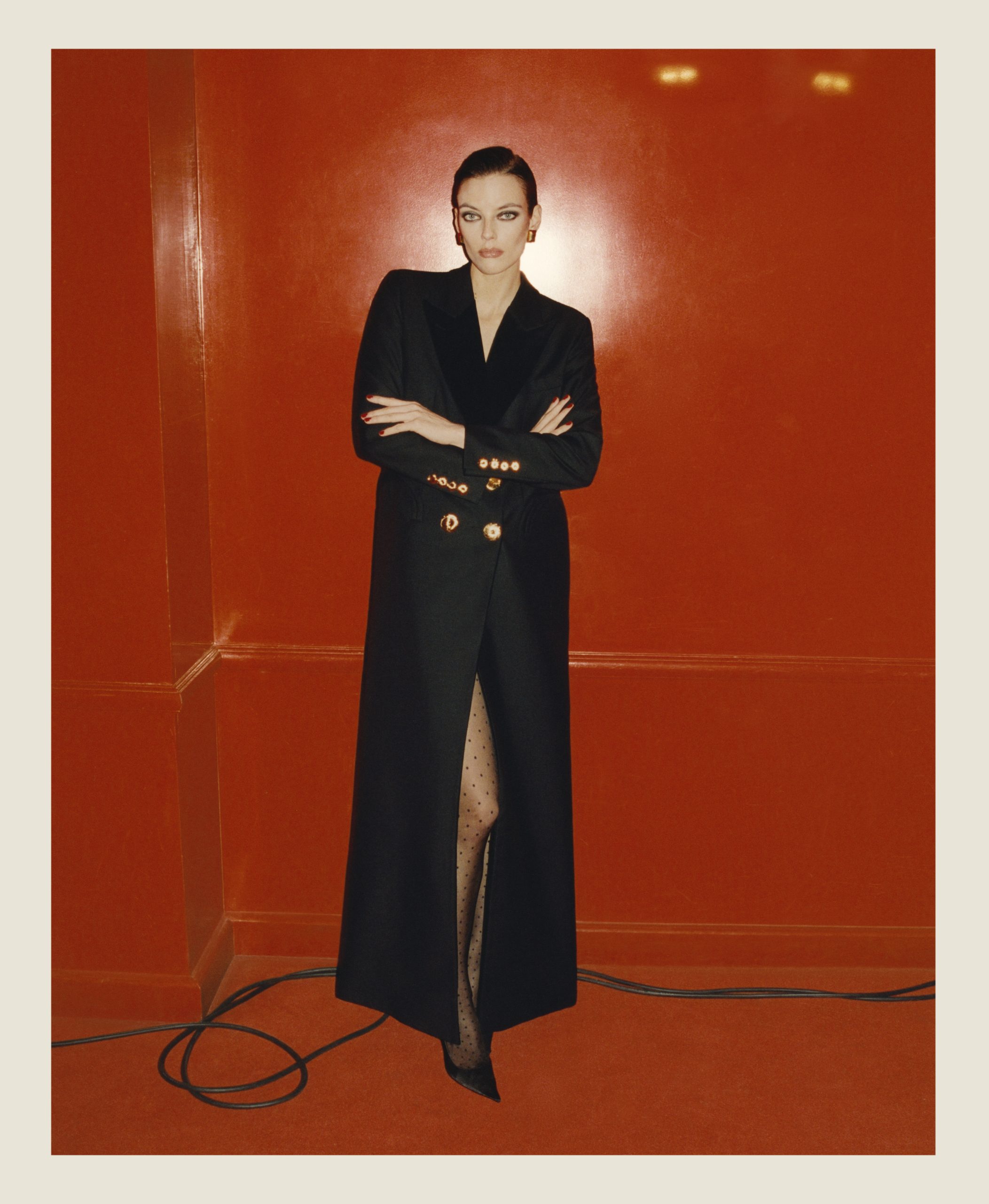 La selezione di capi in pelle include un bolero Gliss in nappa nero portato con la minigonna Coci coordinata, oltre a una serie di pezzi in shearling, tra cui il nuovo Bolero Gliss dall’effetto furry bordato in pelle nera.