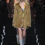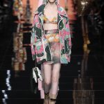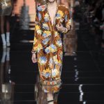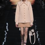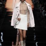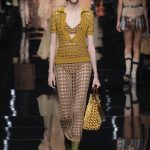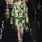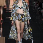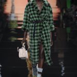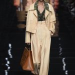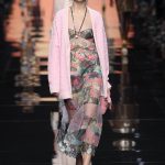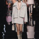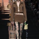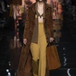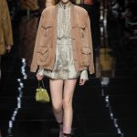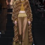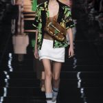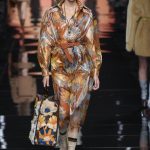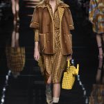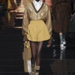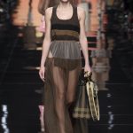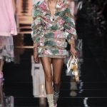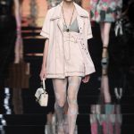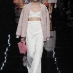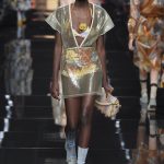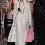 Un’estate assolata e bucolica dove fiori profumati sbocciano nei prati sullo sfondo di una natura radiosa illuminata da un sole caldo, abbagliante, che si tinge di quel giallo brillante tanto caro al regista Quentin Tarantino che ne ha fatto la cifra distintiva del suo ultimo capolavoro ‘C’era una volta…a Hollywood’. Baciata dal sole, la donna di Fendi tratteggiata da Silvia Venturini Fendi, al suo debutto come direttore creativo del ready-to-wear femminile della maison di LVMH( la designer figlia di Anna Fendi si occupava già degli accessori anche prima della scomparsa di Karl Lagerfeld e ora è il direttore artistico di Fendi) è più realistica ma anche più libera e un po’ più audace che in passato, come ha precisato la stilista romana nel backstage. Nel parterre, oltre al gotha della stampa internazionale, spiccano Katie Holmes, Sabrina Carpenter, Tommy Dorfman, Diplo, Matilda Lutz e altri ricchi, belli e famosi, tutti a Milano per scoprire le nuove proposte della griffe. Nello spazio Fendi di via Solari 35, su una lunga passerella dorata, sfilano le star del catwalk internazionale che rifanno il verso alla bellissima e sventurata Sharon Tate, icona tarantiniana (interpretat nell’ultimo film dalla splendida ed elegante Margot Robbie) amante del giallo canarino e delle pelli preziose, esibendo i nuovi feticci dell’estate 2020 targati dalla doppia ‘F’ (che significa Fun Fur ed è stato creato da Lagerfeld negli anni’60): la baguette e la peekaboo subiscono una metamorfosi realizzate con materiali sontuosi e insieme capricciosi come la rafia, pelle intrecciata e tela logata, ma anche fiori di visone intarsiati sulle baguette più desiderabili. Lavorazioni superbe impreziosiscono i talismani del lusso made in Fendi: le fantasie botaniche che celebrano una natura botticelliana appaiono shiny nella innovativa versione vetrificata e sono traslate sulle minibag da caveau e nella fodera del caban di castoro estivo, il camoscio traforato con patchwork geometrici è declinato in giacche fittate e lunghi spolverini molto seventies, la giacca boxy di nylon dal print tropical è completamente perforata al laser, il blouson di visone estivo biondo si porta con lo chemisier check dalla superficie cerata, l’accappatoio di spugna è stampato in versione quadri verdi e neri, striscioline di pellicce fresate e stampate a fiori multicolori sono disposte sui lievi soprabiti trasparenti, trame crochet si alternano a pattern matelassé peso piuma in bianco gesso e tinte pastello, come il rosa marshmallow. I volumi over e le costruzioni sartoriali che citano l’archivio anni’80 della maison non lasciano spazio ad anodine leziosità. Paillettes trasparenti drappeggiate e maglie sottilissime rimandano alle dimensioni scultoree di lavorazioni trapuntate e cloqué. Un caleidoscopio di texture e tonalità unisce la tradizione FENDI ad una vena di fronda estiva. La palette alterna i colori naturali al giallo, fino al rosa cipria e bib bubble fino al verde clorofilla. Tutto è molto fluido ed esprime il punto di vista femminile di Silvia Fendi sulla moda. Deliziosi maxi-gambaletti si abbinano a mocassini slingback con tacco largo e sandali peep-toe floreali.