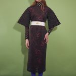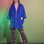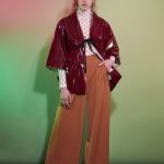 E’ questa l’atmosfera della collezione Fall Winter 2018/19 di Gilberto Calzolari, un futuro dall’amore incerto, ma in cui la donna è, ça va sans dire, preparatissima. Habillè negli abiti kimono, comoda nei pantaloni samurai, tutta la collezione è pervasa da un gusto orientale, con un tocco romantico e un’aria ultra-moderna.