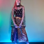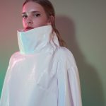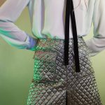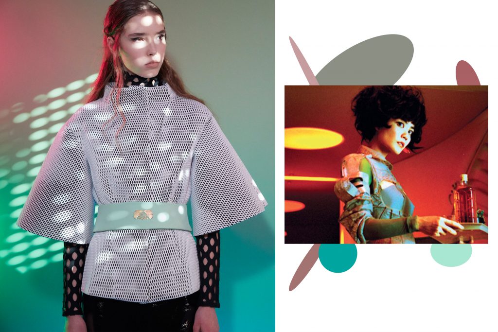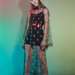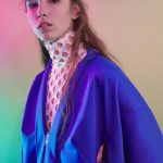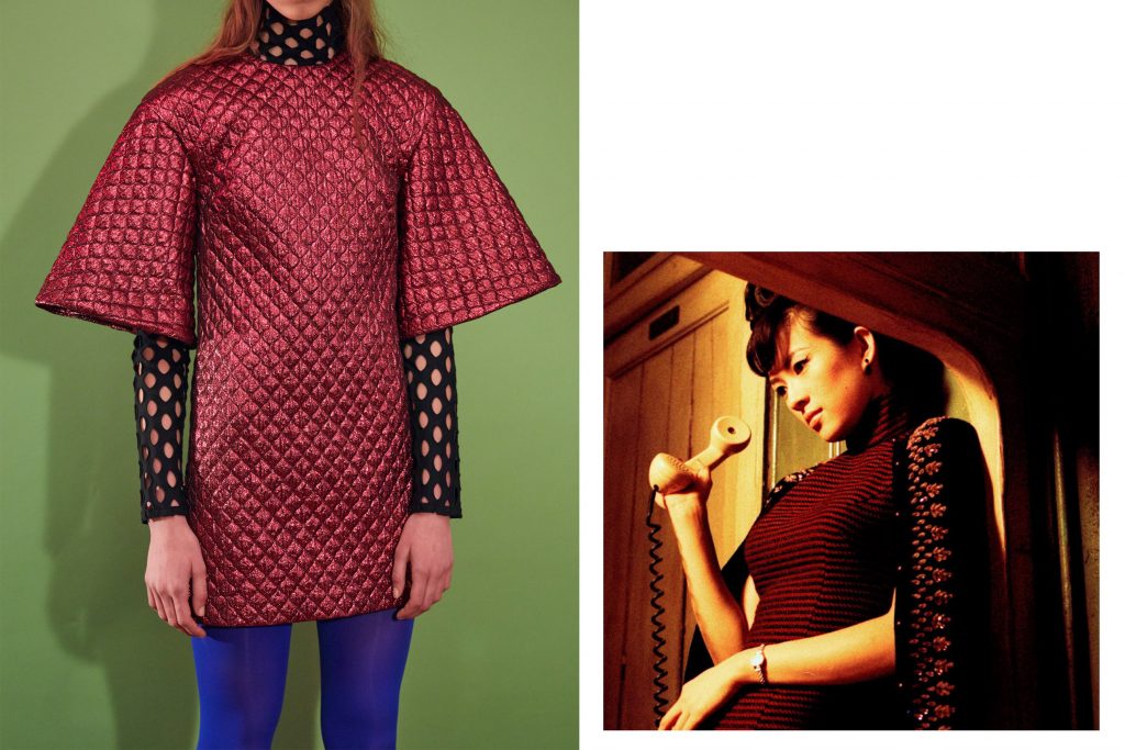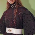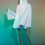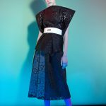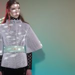 La collezione Fall Winter 18/19 di Gilberto Calzolari racconta quel 2046 ma con un piede nel presente, una combinazione fresca ma ricercata, mantiene quella grazia e quella “castità” tipica della donna orientale, abiti che si alzano fino ad avvolgere il collo, qui in reti elasticizzate.