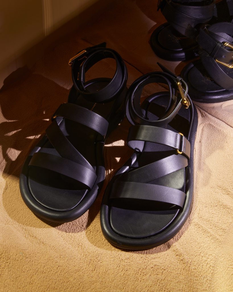 La nuova slipper dalla forma avvolgente è leggera e morbidissima, idem per il nuovo sandalo rock-gladiator ingentilito grazie alla sua pianta generosa e alle soffici e confortevoli bombature.