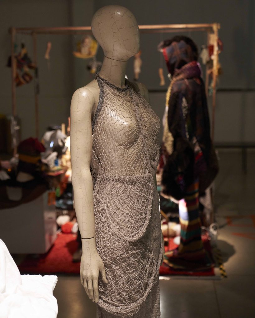 L’amore per la maglieria e per la versatilità della lana vergine in una collezione che diventa ode all’antica pratica artigiana, attraverso la lente distorta delle fantasticherie dark e dell’esagerazione. Per quanto delicata, morbida e malleabile, la maglieria tiene in sé la memoria tangibile di un ciclo di tensioni. Partendo da una fibra animale trasformata in anelli e nodi da una danza manuale, il lavoro a maglia domestico diventa qui una pratica di movimento e allungamento, di deformazione e disgusto. Il corpo diventa una sorta di vaso che mostra una danza macabra di fibre e filati: essi si uniscono e diventano un tutt’uno con chi li indossa, condividendo una malvagia energia testurizzata.