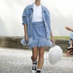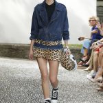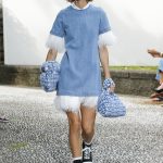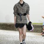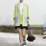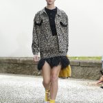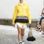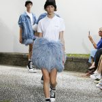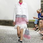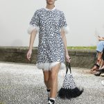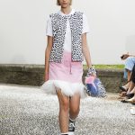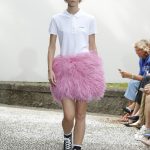 Vaporosi bordi staccabili in marabù decorano come un leitmotiv la collezione; sono applicati a bombers e biker jackets sportive in denim lavato dalle proporzioni oversize, a cui la stampa a motivi animalier conferisce un appeal ironico e sexy; si trasformano in deliziose minigonne-pouf indossate con piccole polo in piqué di cotone; spuntano a contrasto dagli orli di abitini bon-ton dalla linea a trapezio, da giacche boxy e da corti soprabiti dalle brillanti tonalità color-block.