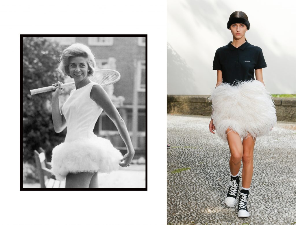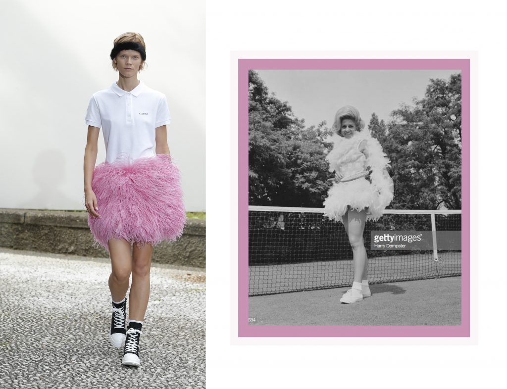 Lea Pericoli, tennista degli anni ’60 che fece scandalo per il suo look eccentrico, è la figura d’ispirazione della collezione Simonetta Ravizza. Quando la gonna aveva il compito di coprire le ginocchia, anche su un campo da tennis, Lea Pericoli le scopre fino alle mutande!