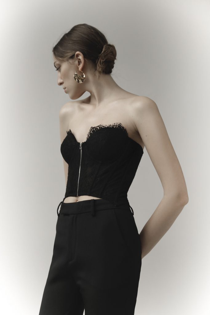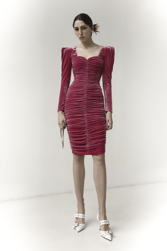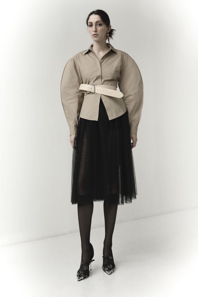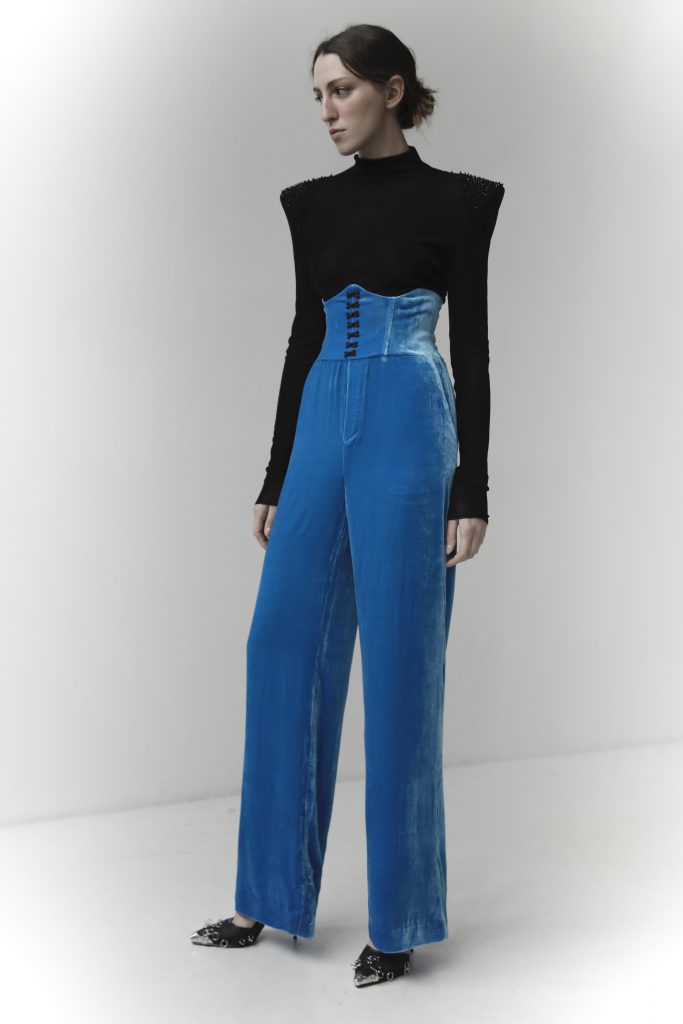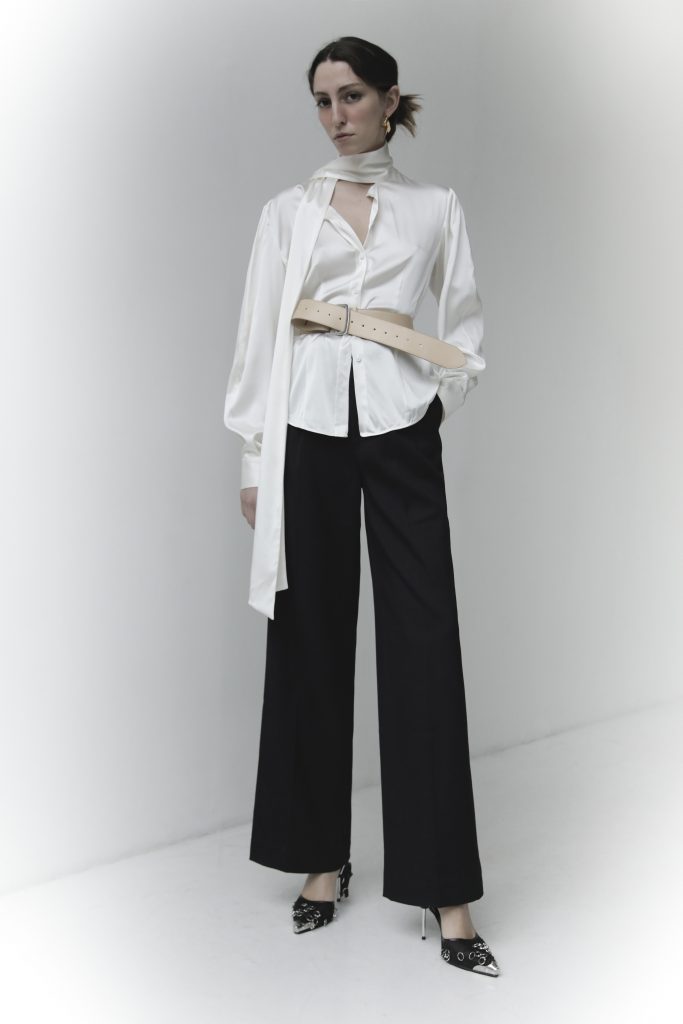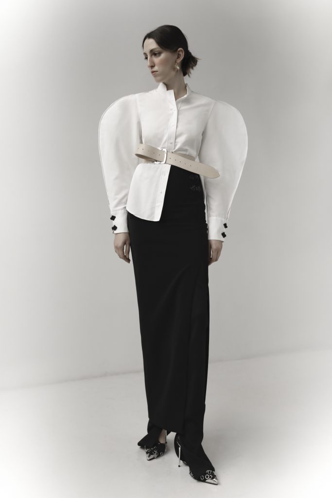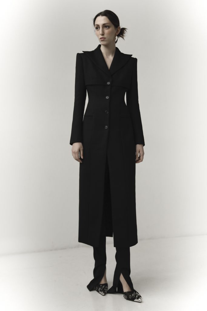 L’importante struttura delle spalle delle giacche e delle camicie, realizzate con una particolare tecnica, i completi attillati e la minigonna con le perline raccontano il carattere della donna di Judy Zhang che si contraddistingue per il coraggio, l’indipendenza e la ricercata sensualità, sempre pronta a lottare per le cose in cui crede anche contro ogni convenzione.