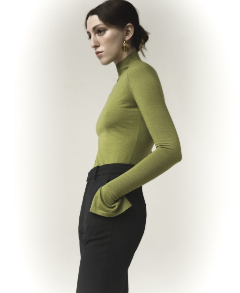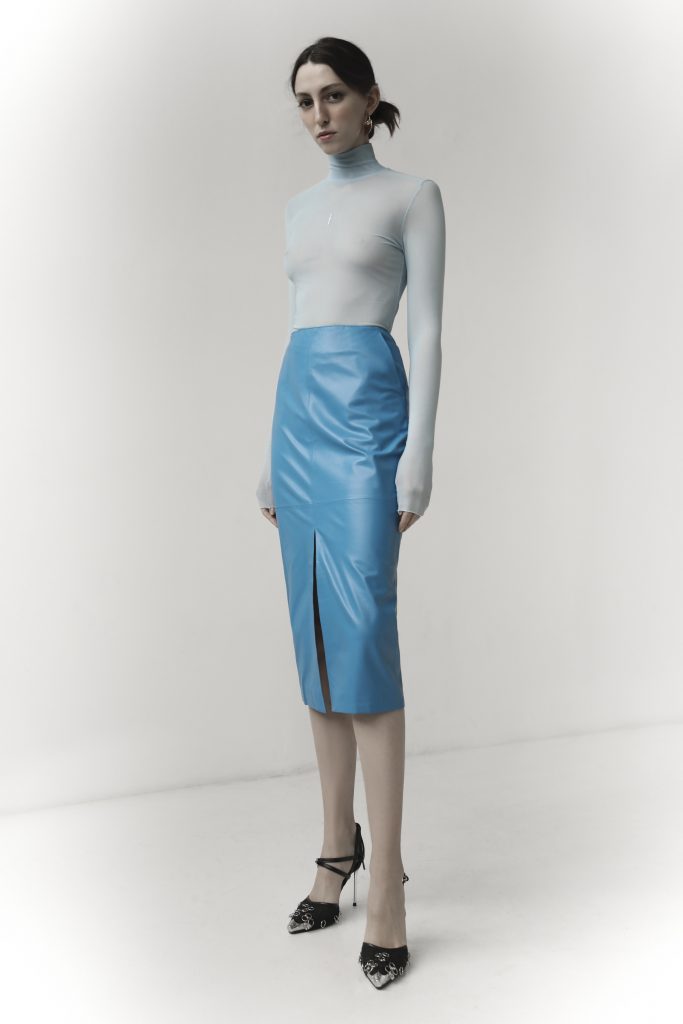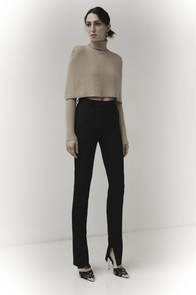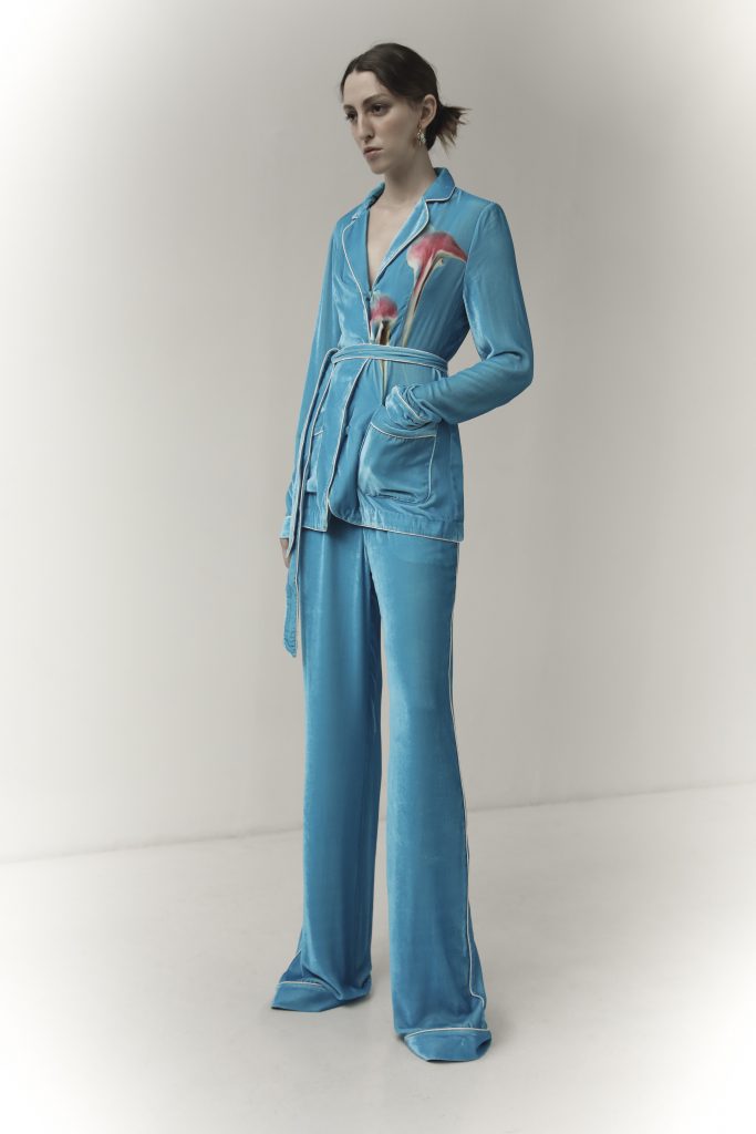 I tessuti lussuosi, modellati con maestria per creare cappotti, abiti, blazer, pantaloni, camicie e gonne dal taglio e dettagli sartoriali, caratterizzano la selettiva scelta della designer che propone seta, lana, cashmere, velluto e tessuto giapponese speciale. Il mohair fuxia è stato scelto per il caldo cappotto dagli inconfondibili colletti a punta e cintura in vita. La pelle azzurra e verde è, invece, il materiale scelto per la canotta da indossare con le camicie dalle maniche importanti e la sua gonna dallo spacco profondo. Ogni capo è un inno all’alta sartoria Cinese che la designer vuole portare con orgoglio nel mondo.