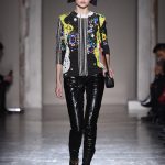 Veste in libertà le ore della sera, in paillettes rosso fuoco e diamante, sotto le giacche taglio uomo lascia intravedere la lingerie; la palette colori va dal giallo acceso all’azzurro pastello e dal rosa tenue al blu elettrico.