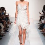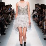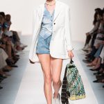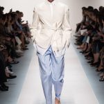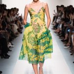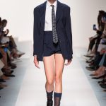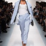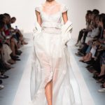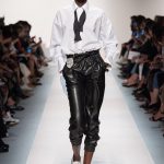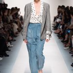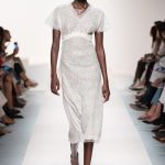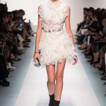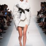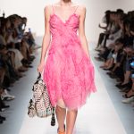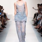Una femme fatale d’altri tempi incede sinuosa in pedana sulle note ammalianti delle canzoni di Mina e di Ornella Vanoni, avvolta in languide vestaglie di satin e pigiami couture di una raffinata lascivia, per una nottambula che vive una vita da sogno. L’intimo inside-out, elevato da Ermanno Scervino a regola aurea dello stile, conquista la scena nella collezione donna primavera-estate applaudita da Kitty Spencer, Martina Colombari e Luca Argentero, protagonista dell’ultimo biopic su Leonardo Da Vinci. Lo stilista, che il prossimo anno festeggerà 20 anni di carriera, può essere legittimamente considerato l’erede di Emanuel Ungaro famoso per i suoi drappeggi da diva e per il suo uso magistrale del pizzo che gli valse ai tempi d’oro l’appellativo di ‘monsieur dentelle’. Laddove però il pizzo da Scervino è sempre sdrammatizzato: se nella collezione invernale è sommato alla severa eleganza androgina dei coat di tweed, per l’estate prossima simula l’insostenibile leggerezza delle piume, a ribadire l’effetto lingerie à porter che pervade la collezione. La piccante coquetterie di sottovesti e giacche da camera come anche dei nuovi pigiami azzurro cielo, animalier o punteggiati di pois formula un visione destrutturata del suit formale più ricercato dal giorno alla sera, per una femme galante che ama le succinte cappe di nappa verde pisello e il parka prezioso e dégagé. Tutto ha un piglio rilassato e insieme sexy di una sofisticata ambiguità: la nappa nera è tradotta in tute casual e pantaloni dal taglio femminile come anche nelle fogge ipersexy degli abiti bustier a princesse dalla gonna animata da volumi inediti. Un flash ciclamino somma il pizzo e i ricami di cristalli, le stampe e il giallo, l’organza e lo chiffon conferiscono una vaporosa leggerezza agli abiti da gran sera e da ballo destinati a star del calibro di Nicole Kidman che ripetono gli orli frastagliati delle gonne svasate degli abiti da cocktail che si avvicendano agli outfit romantici dalle inflessioni mannish in pizzo brodé. Sexy-chic.