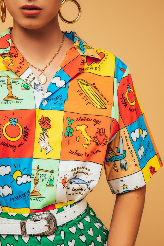 Il brand Alessandro Enriquez con la collezione SS21 propone attraverso le sue stampe vitaminiche le camicie GENDERLESS.I modelli sono stati pensati per valorizzare ogni fit, indipendentemente dal genere.Il motto personale del designer Alessandro Enriquez è “Be yourself!” quale migliore capo da indossare in ogni occasione, per uomo o donna e per esprime se stessi attraverso le stampe:I disegni dei mandarini che rappresentano un omaggio alla mediterraneità, la regina della cucina, la pizza.La “tavola apparecchiata” raffigurata da una tavola imbandita dei piatti tipici della tradizione italiana e l’immancabile bandiera tricolore. La stampa mercato che richiama il famoso quadro “La Vucciria” di Renato Guttuso dove il caos della folla si sposa con lemeravigliose cromie dei banconi della frutta e della verdura, questa volta in versione rigorosamente vegan.Ed in fine la stampa “cielo” composta da cuori che volano nei cieli nitidi insieme a giganteschi pomodori-mongolfiere tra messaggi di speranza e allegria.