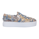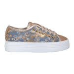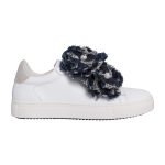 Inoltre Stokton, che conosce i capricci muliebri, ci da’ la possibilità di inserire e togliere gli eccentrici dettagli: così le rose di stoffa possono comparire, alternandosi nei colori, in nero o rosa antico, o scomparire a nostro piacimento. Le maxi rose fatte in denim, possono abbinarsi all’effetto used della sneakers o lasciare liberi i lacci, in intrecci fantasiosi che avvolgono la caviglia.