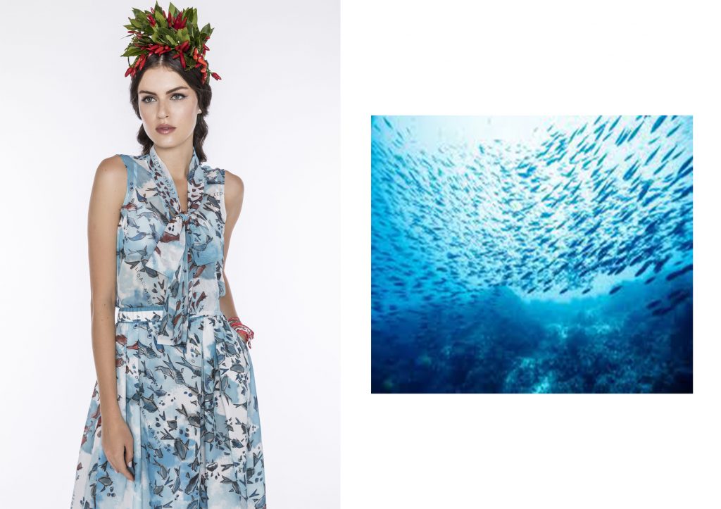 I gialli accesi dei limoni, gli azzurri dei mari del sud, i rossi dei piccanti peperoncini, ogni elemento legato alla terre calabresi, diventano oggetto protagonista del capo, dai mini dress alle camicie in chiffon, dalle t-shirt alle longuette in cotone.