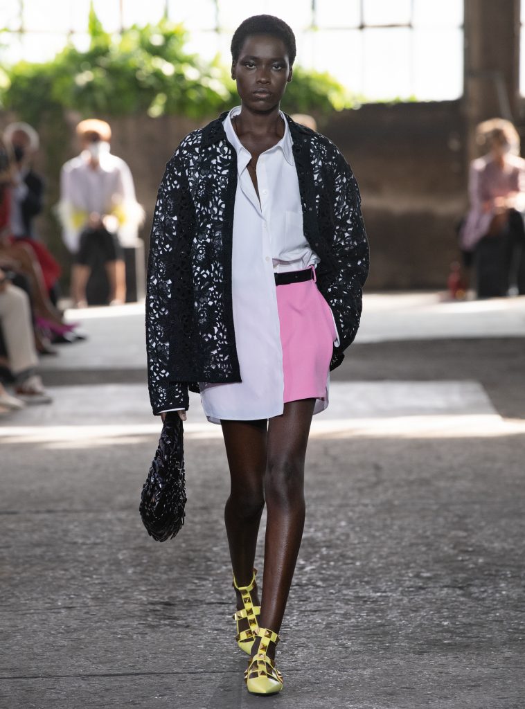 Le trine, realizzate anche in paglia e in forma di crochet, imperversano ovunque in omaggio a una nuova gentilezza di cui abbiamo un urgente e disperato bisogno. Giacche destrutturate in versione fustellata e gonne traforate effetto macramé nobilitano gli outfit apparentemente più basici guidati da un’idea della semplificazione generale delle fogge suggerita anche dall’ubiquità del denim.