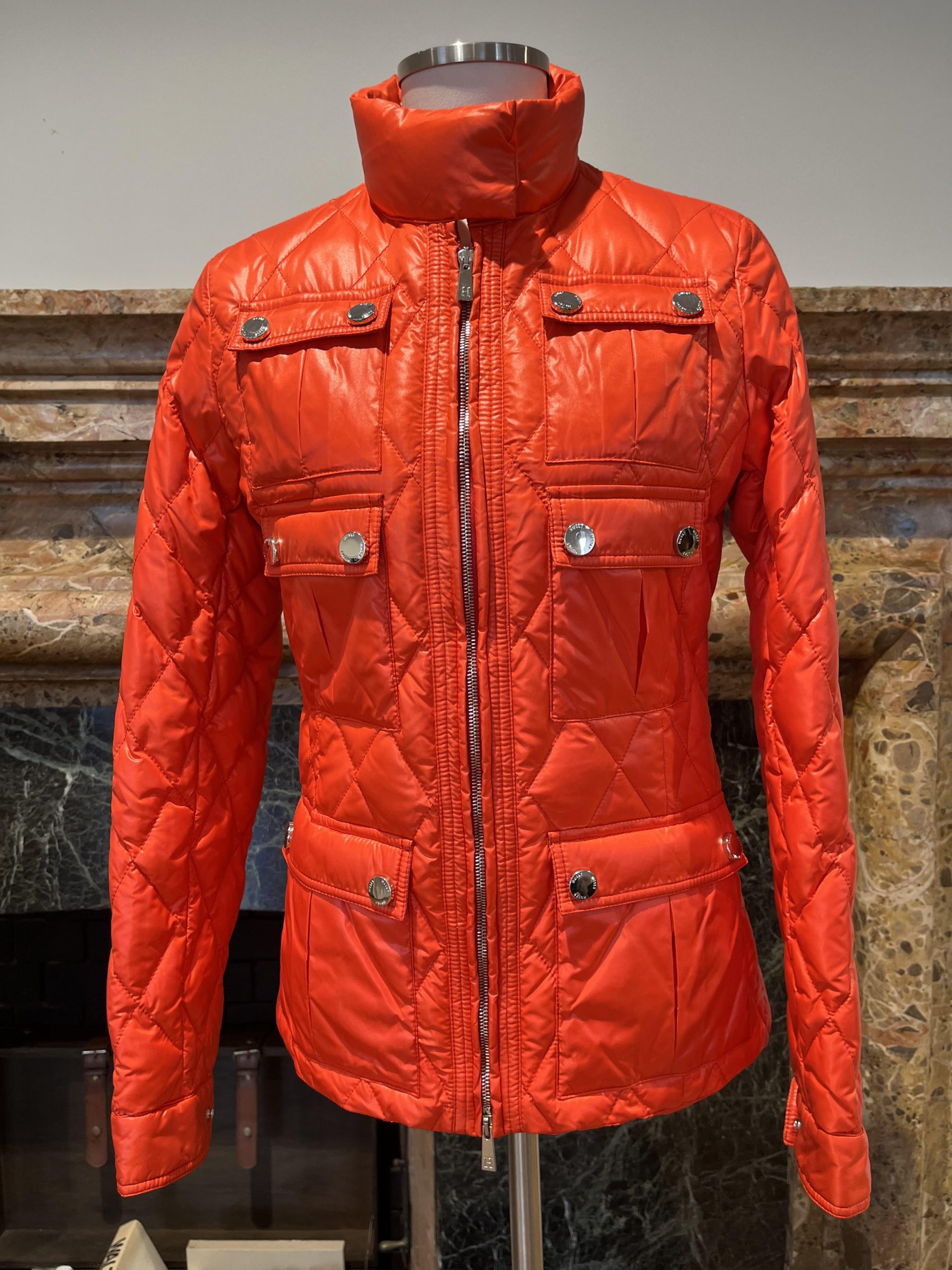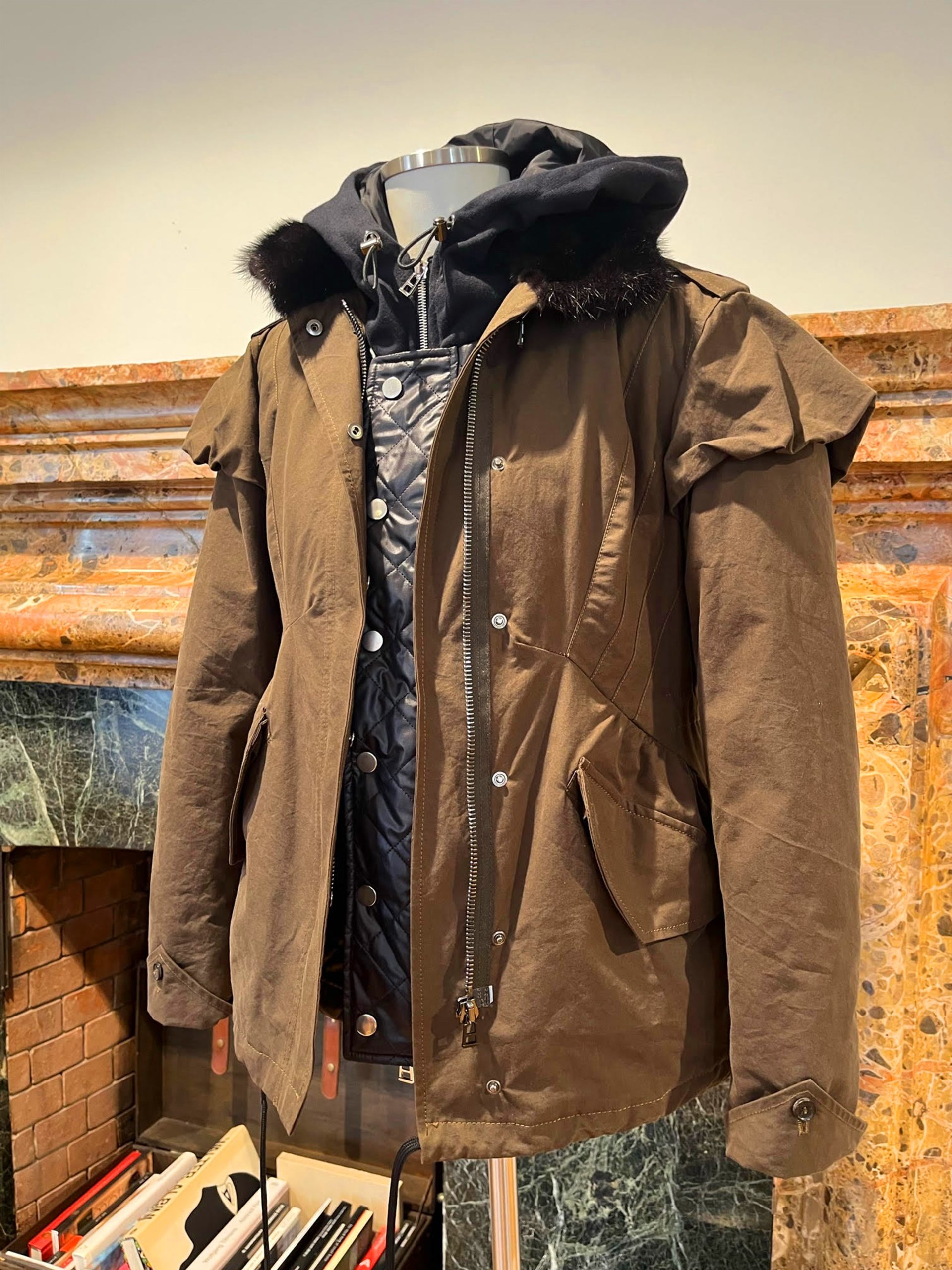 Il knitwear si evolve con colorate maglie cashmere e lana mohair, mentre la matericità gioca nelle lane bouclé o nei ricami floreali che sbocciano in 3D sul retro dei capi spalla, ispirati alla brughiera di Bodmin in Inghilterra, impreziositi da una pioggia di paillettes. A completare l’offerta l’over bomber con cappuccio con dettagli di pelliccia di lince, la giacca trapuntata extra leggera 80 grammi, gli short warm in lana rasata, i dress neri con dettagli traforati, fino ai capi tecnici per la parte più sportiva.
