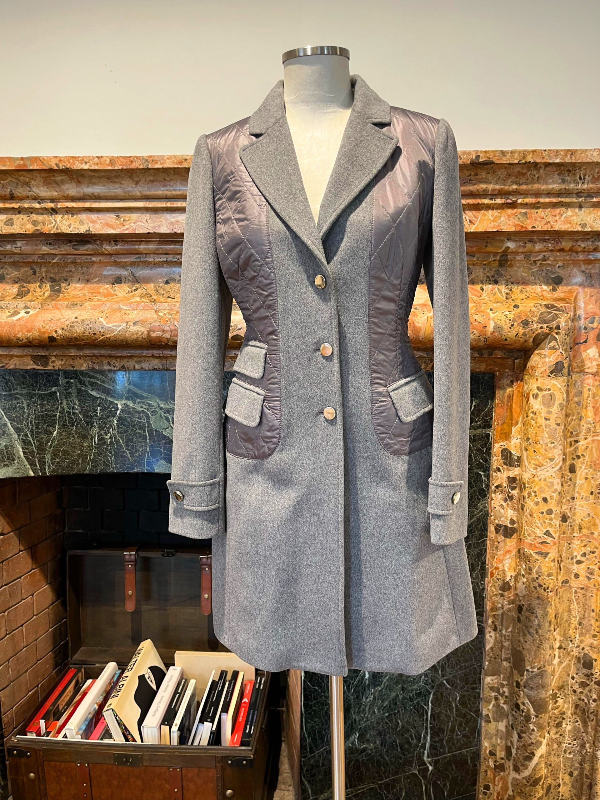 Una proposta che porta in primo piano la ‘Riding Jacket’, in versione doppio petto, per un’eleganza unica nel tempo libero e la ‘Competition Jacket’, in panno cashmere abbinato ad inserti in nylon trapuntato, signature della maison Husky. Pezzi all-season soft e caldissimi, dal fit confortevole e ad alta performance, che testimoniano la ricerca continua ad alta tecnologia dell’azienda. Il viaggio trasversale continua attraverso le atmosfere della Swinging London, che si leggono negli short coat in lana mohair dai colori pop e intensi, arancio fluo, giallo ocra e verde salvia. Accanto, anche una palette cammello, nera e blu intenso.